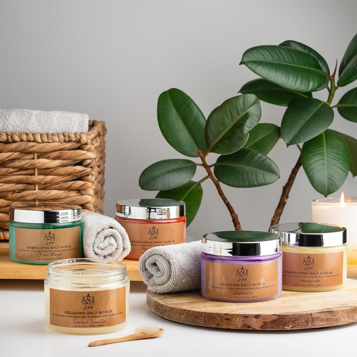 Salt Cellar Spa Energizing Lemongrass Salt Scrub - Awaken Your Skin with Dead Sea Minerals - Revive, Refresh, and Rejuvenate - Made in Israel, Cruelty-Free, 18 oz.