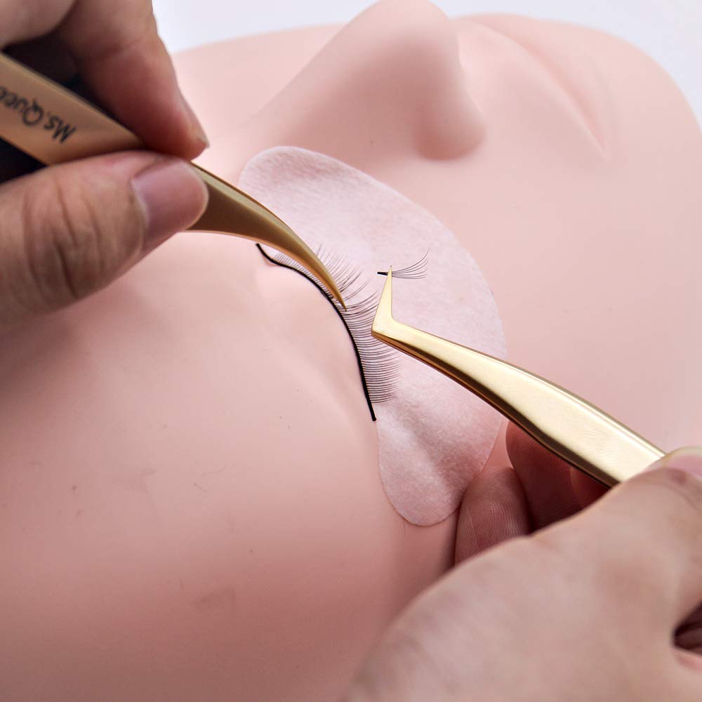 Ms.Queen Eyelash Extension Tweezers Set-Precision Tweezers for 2D-6D Volume&Individual False Lashes Extensions with PU Storage Case-Golden (Volume Tweezers/M003-2)