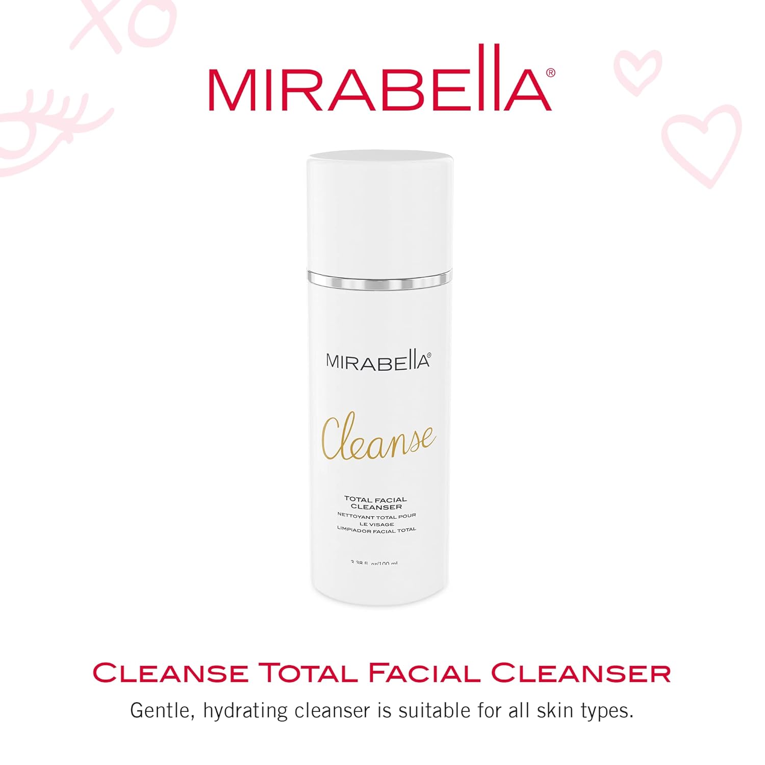 Mirabella Cleanse Total Facial Cleanser - Hydrating Gentle Cream Cleanser for All Skin Types - Face Cleanser & Makeup Remover - Face wash for Sensitive Skin & Oily Skin Formula