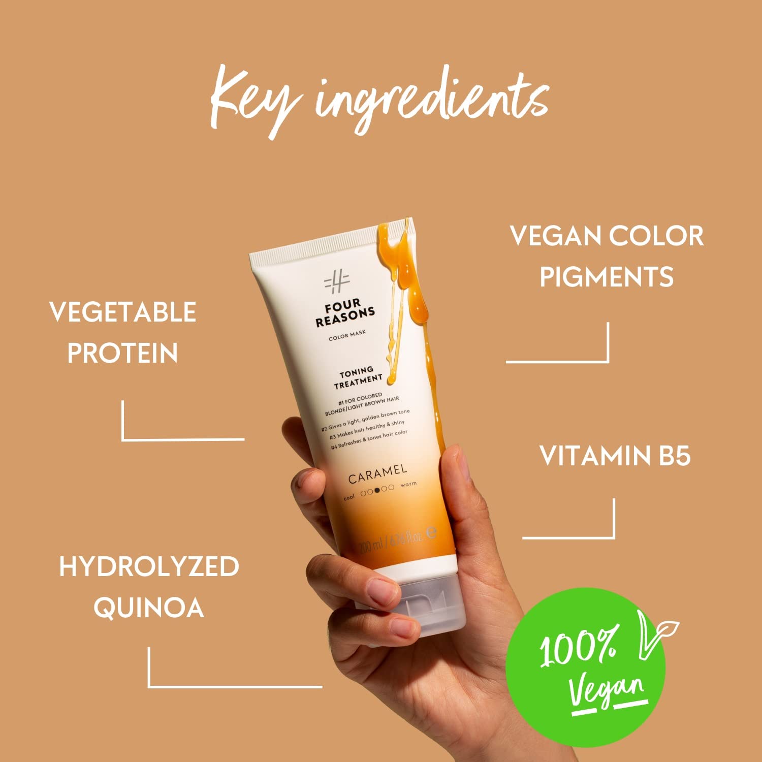 Four Reasons Color Mask - Caramel - (27 Colors) Toning Treatment, Color Depositing Conditioner, Tone & Enhance Color-Treated Hair - Semi Permanent Hair Dye, Vegan and Cruelty-Free, 6.76 fl oz