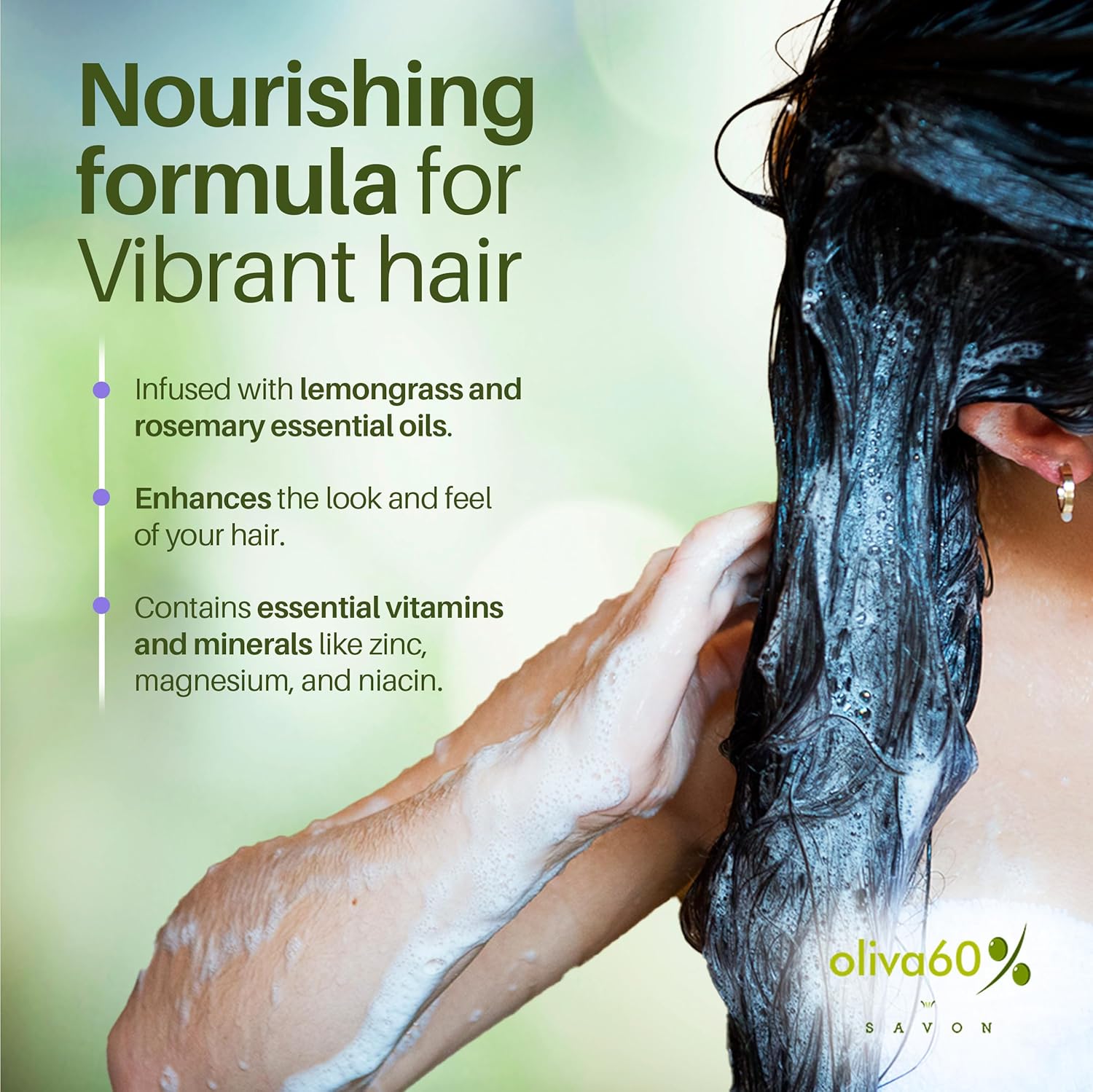 Shampoo Bar Lemongrass Rosemary - Olive, Argan, Macadamia Oil | Sulfate & Paraben Free | Organic Natural Hair Care | 3.5 oz | Shampoo for Oily Hair | No Plastic Waste | OLIVA 60