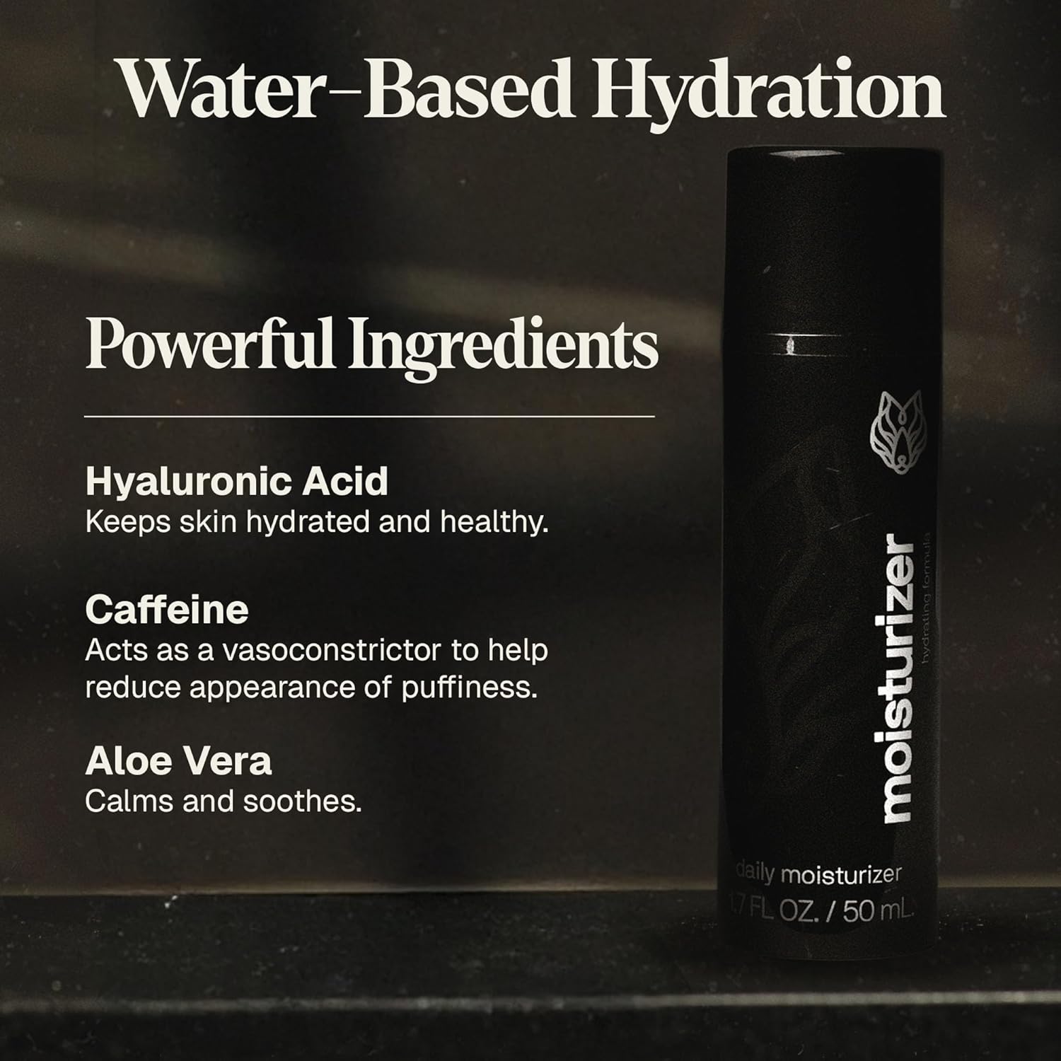 - Moisturize Your Skin: Keep your skin moisturized with Black Wolf Moisturizing Gel for men. Water-based and formulated to hydrate with hyaluronic acid. Trust us, you will want this one on hand wherever you go. For guys with oily skin. Each bottle contains 1.7 fl oz.