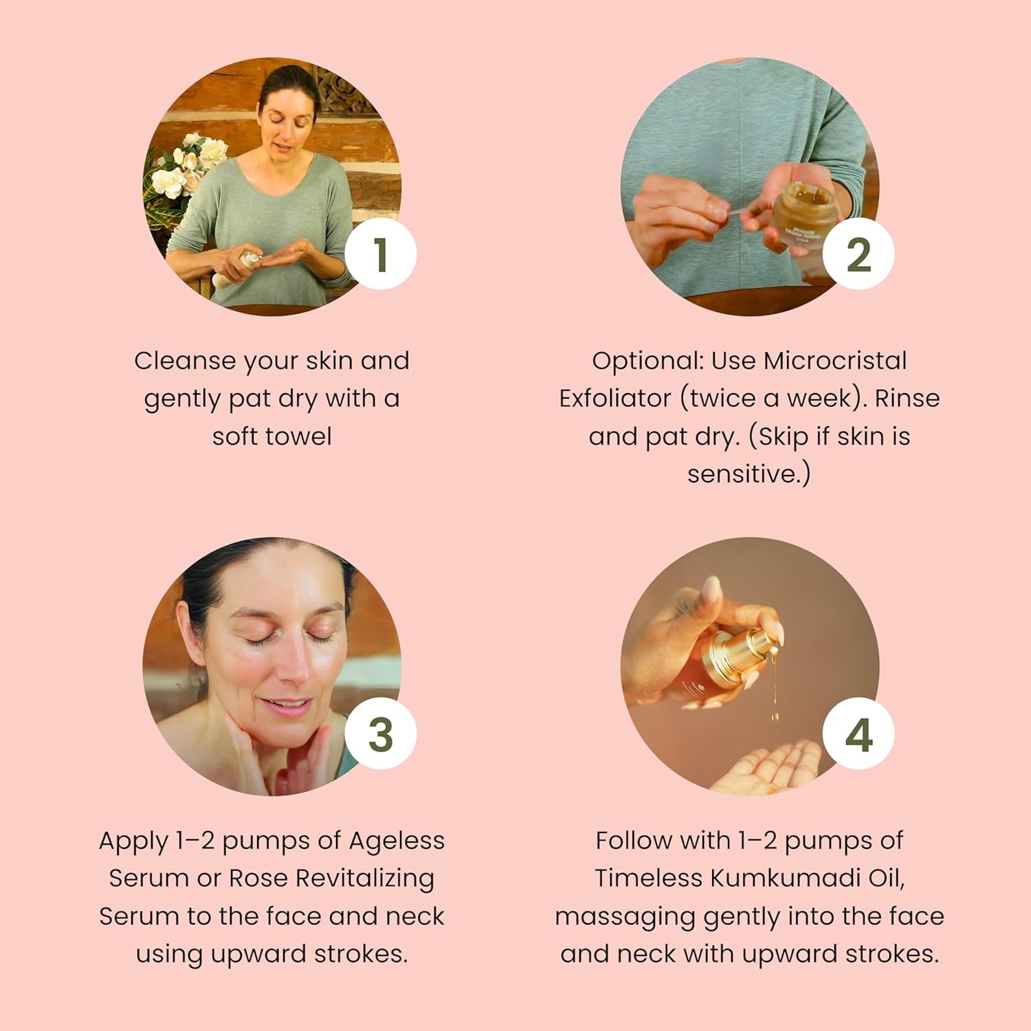 • Embrace Timeless Skin with A Good Cause – 100% of the profits from every bottle of Timeless Kumkumadi Oil are donated to support meaningful causes. Unlock the key to timeless beauty, while you become a part of our commitment in making a positive impact. Incorporate it into your daily regimen and witness the magic as your complexion shines with a golden glow that’s just as lovely now as it was in ancient times.