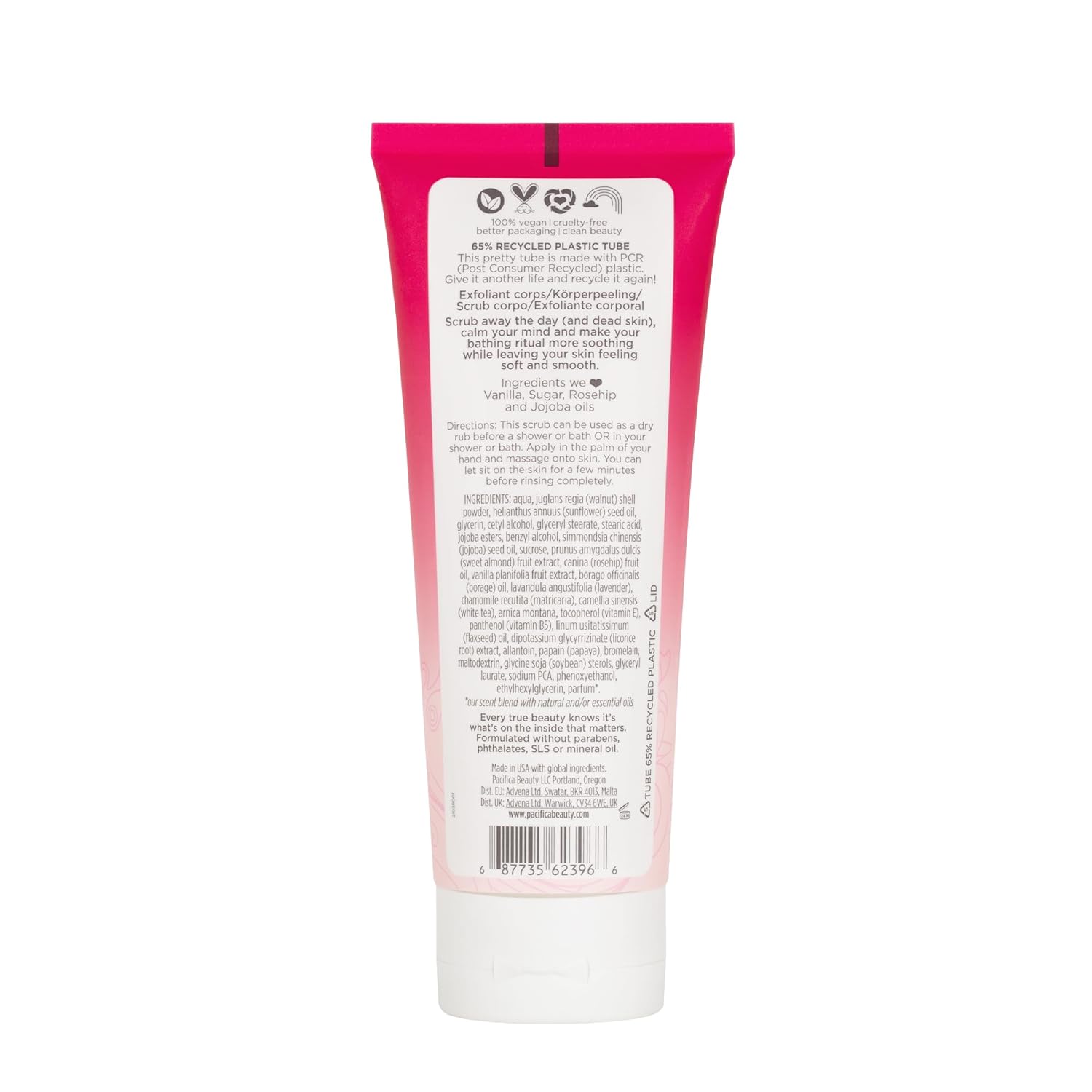 - PLANT-POWERED BODY SCRUB infused with sugar, vanilla & rosehip oil this gentle scrub will give you a sweet escape from your everyday.