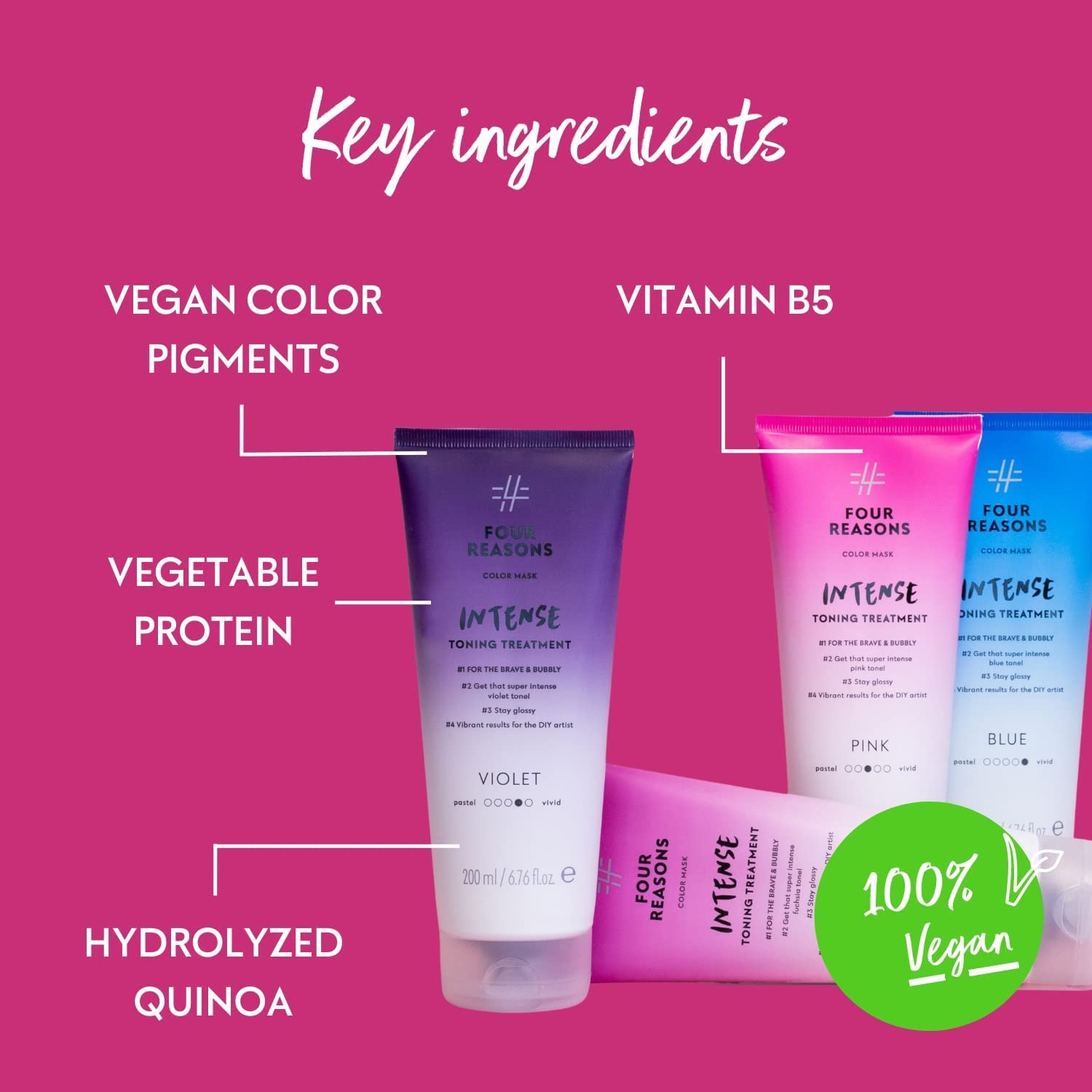 Four Reasons Color Mask INTENSE- Fuchsia – (27 Colors) Intensive Toning Treatment - Color Depositing Conditioner – Semi Permanent Hair Dye for Lightened and Colored Hair– 100% Vegan, 6.76 fl oz