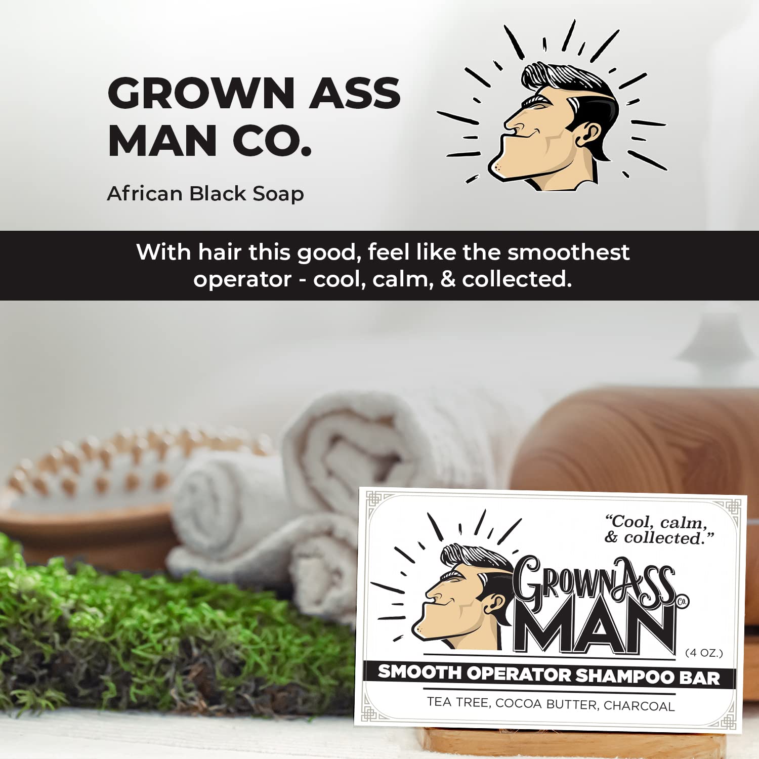 Solid Shampoo Bar Rich Lather 3 in 1: Hair, Beard & Body Wash - Plastic Free & Eco-Friendly, Natural & Organic Clean for All Hair Types, 4oz Bar (Smooth Operator, 3-Pack)