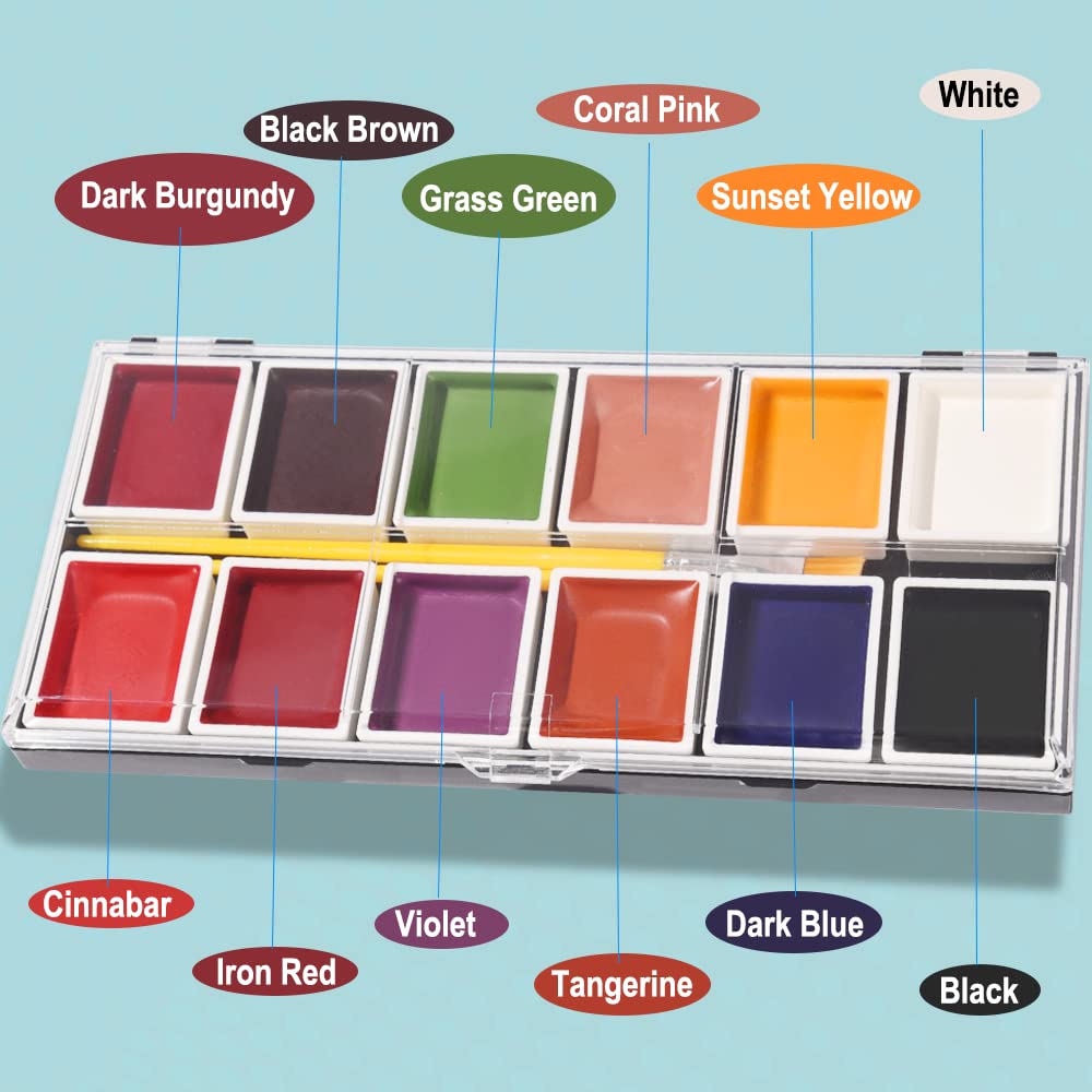 - 【Real Experience】Cost-effective makeup palette, and excellent waterproof performance and easy to remove, whether it is used for special effects makeup for acting or Halloween for zombies, monsters, vampires and other horror models. The capacity of a color palette is 4.23oz. There are 12 colors for daily use. If you want more colors, you can buy another color makeup palette to supplement.