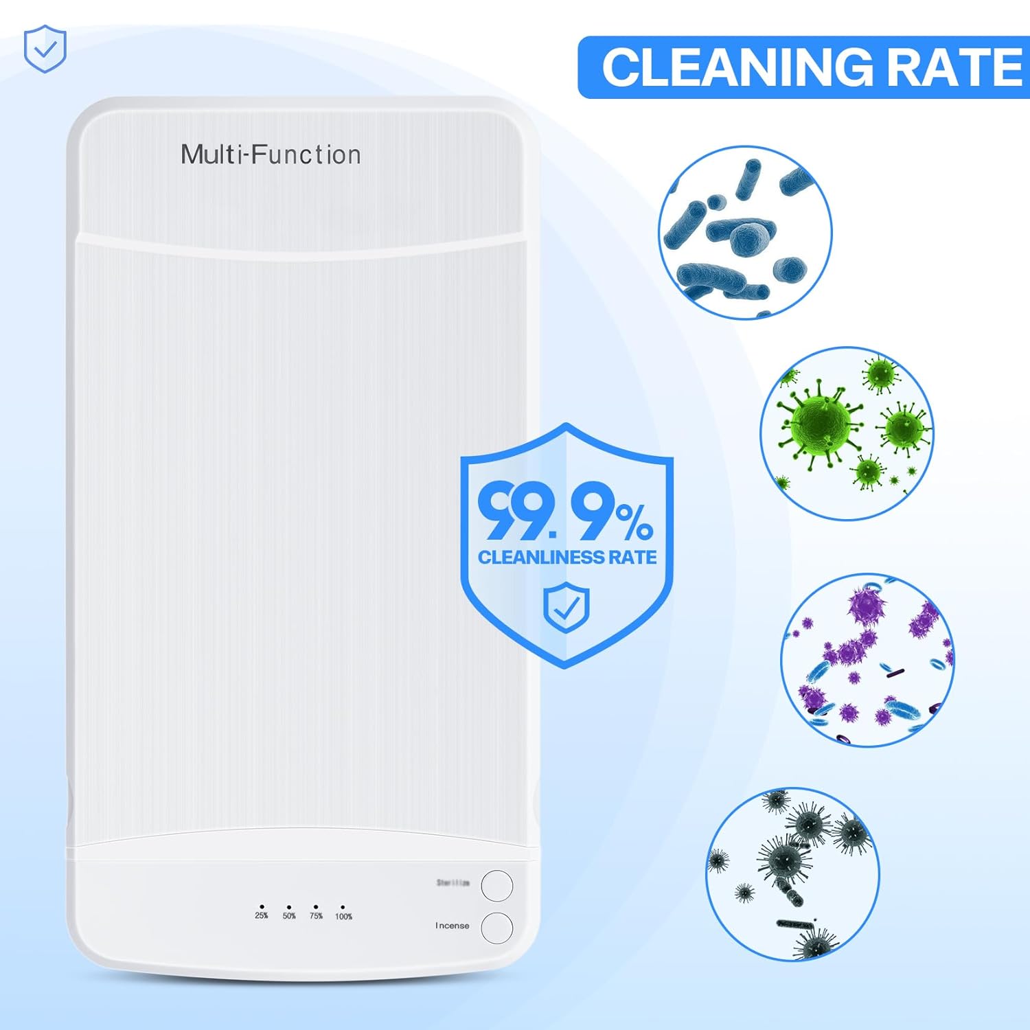 - Fast Sterilizer:2A high-efficiency power and sterilizer,the double-sided blue lamp cross kills, which is equivalent to the sterilizer strength of 48 LED blue lamp beads.The best clean time is 3-5 minutes,and the specific blu-ray wave length can achieve the goal of clean.