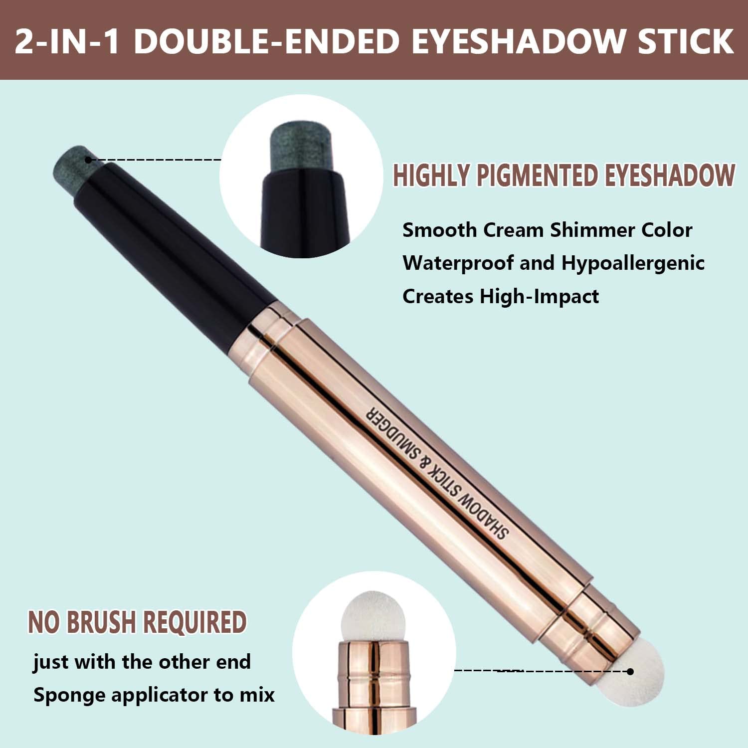- The eye shadow and the brush are combined into one. Each eyeshadow stick comes with a soft brush that blends eyeshadow better without crossing colors. The soft brush is easier to mix, and does not hurt your skin. The twist design is easy to control the length of eye shadow stick makeup. Quick application for both professional makeup and beginners