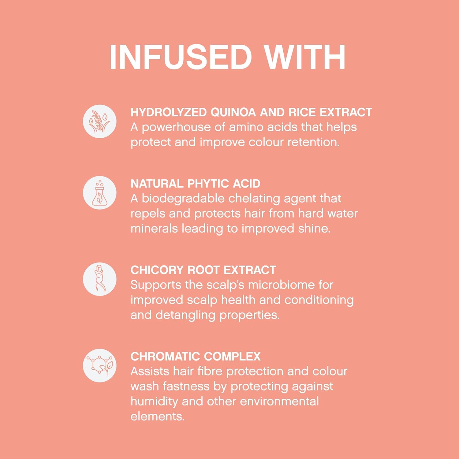 - Acidic pH Shampoo: Our pH balanced shampoo gently purifies without stripping colour, keeping your hair nourished and hydrated