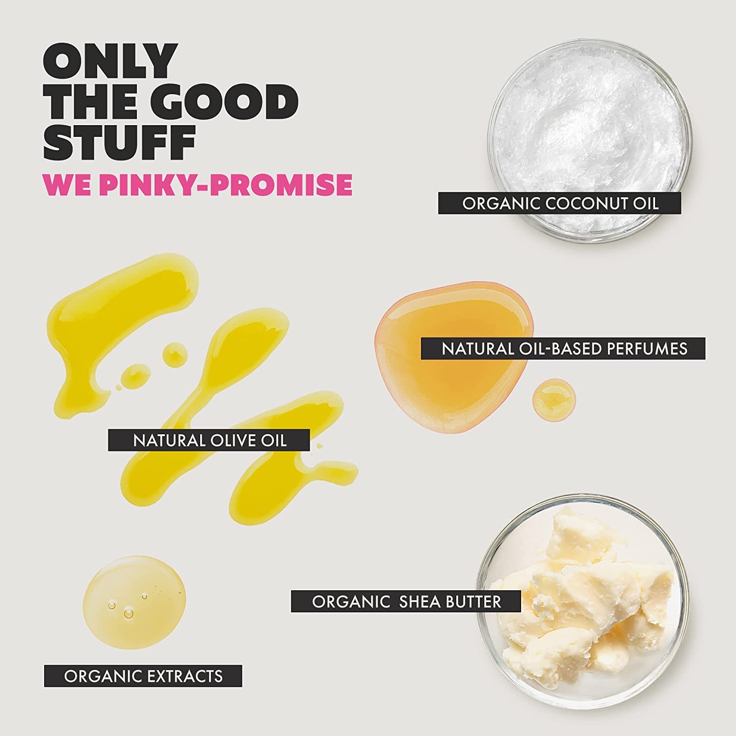 - Natural Ingredients: Made with organic olive oil, coconut oil, and shea butter for nourishing and moisturizing skin.