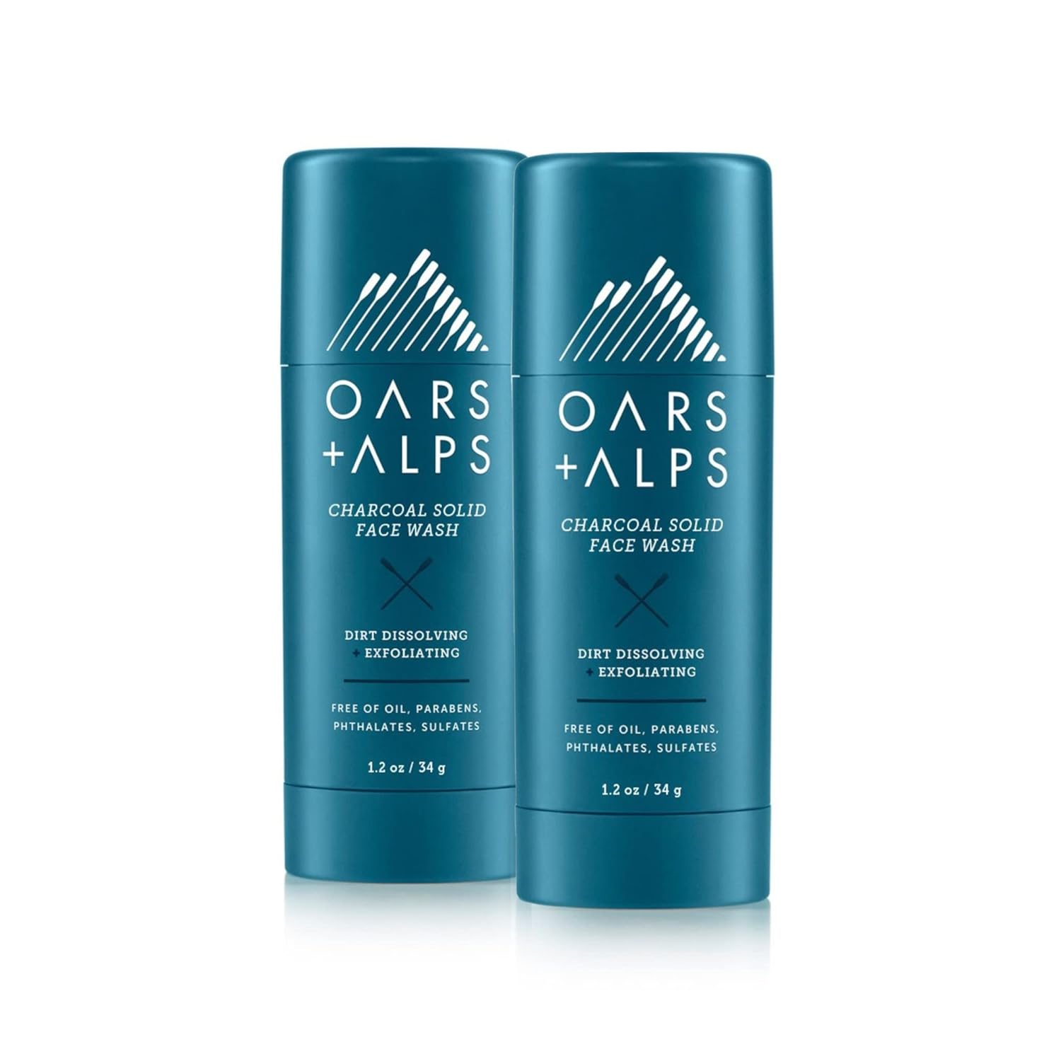 Oars + Alps Face Wash with Activated Charcoal, Dermatologist Tested Exfoliating Facial Cleanser, TSA Friendly, 1.4 Oz, 2 Pack