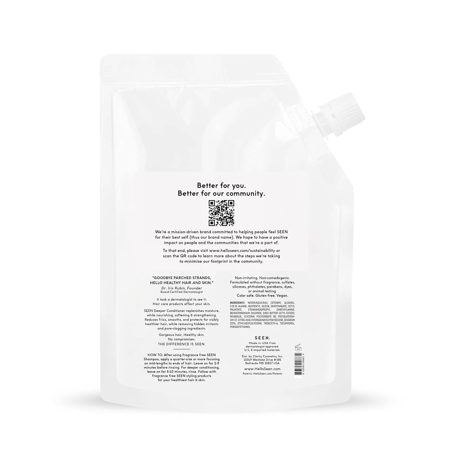 SEEN Deeper Conditioner Eco-Refill, Fragrance Free - Non-Comedogenic & Sulfate-Free Hair Conditioner- Dermatologist-Developed - Safe for Sensitive & Acne Prone Skin