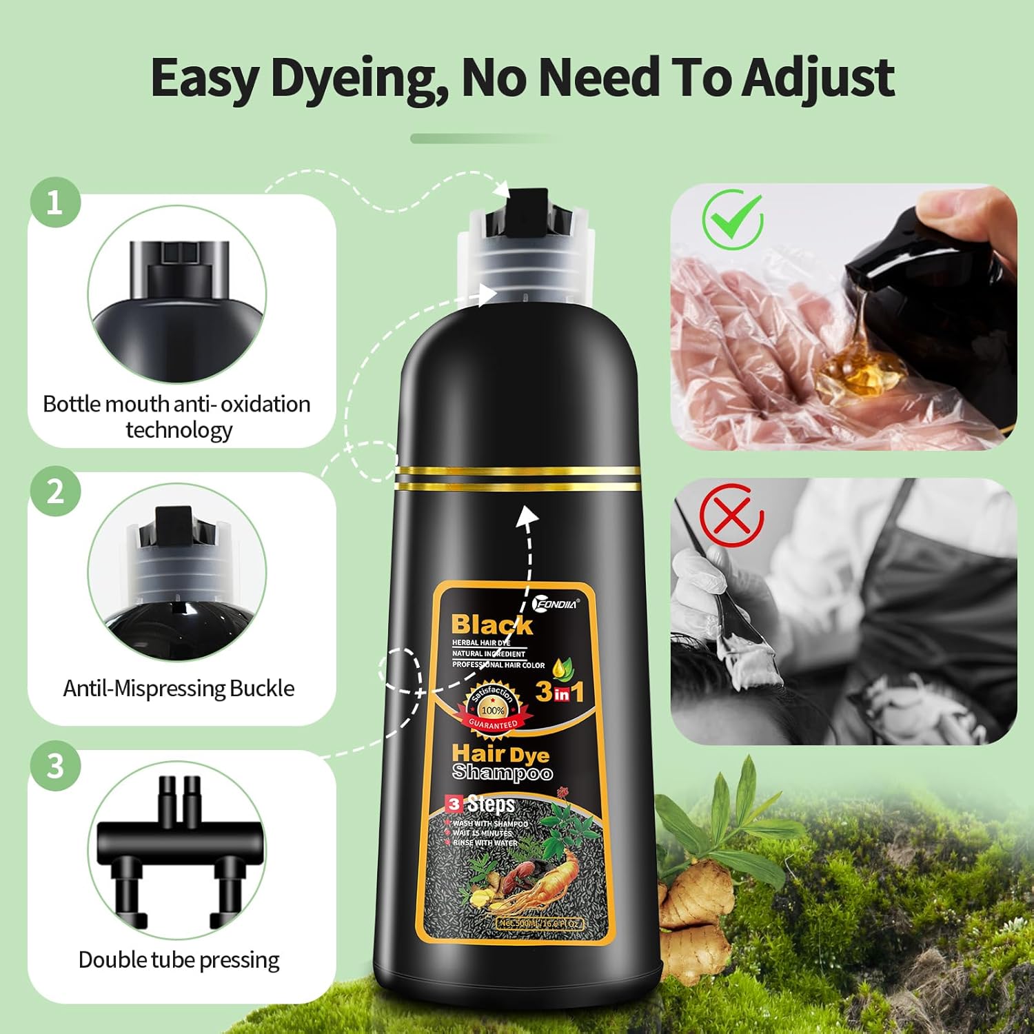 - Easy To Use & Time-Saving - It only takes 15-20 minutes! No need to worry about messy application or uneven color - our 3-in-1 hair coloring shampoo takes the guesswork out of at-home hair coloring. Our shampoo formula makes it easy to apply and evenly distribute color, so you can achieve a salon-quality look without leaving your home.