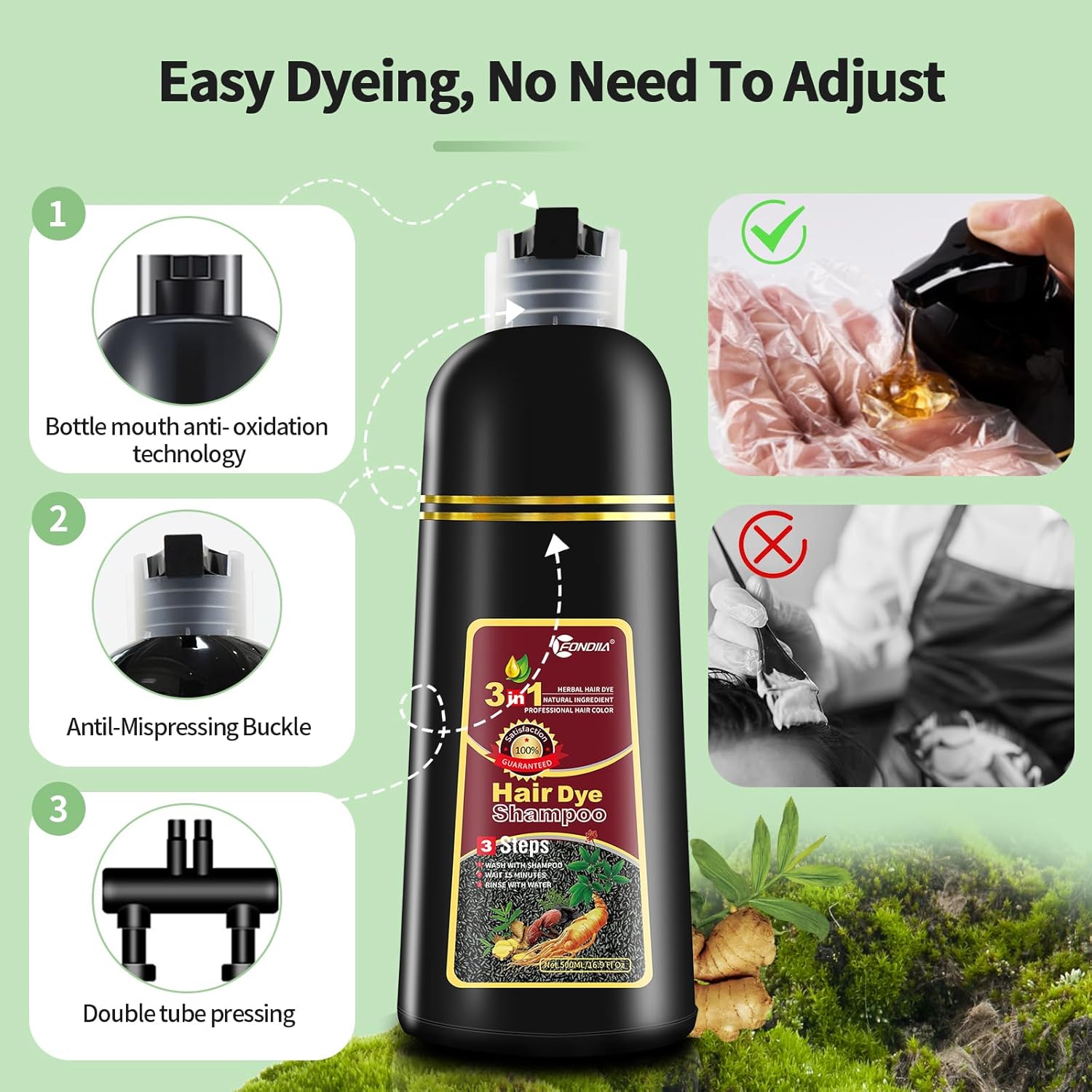 - Easy To Use & Time-Saving - It only takes 15-20 minutes! No need to worry about messy application or uneven color - our 3-in-1 hair coloring shampoo takes the guesswork out of at-home hair coloring. Our shampoo formula makes it easy to apply and evenly distribute color, so you can achieve a salon-quality look without leaving your home.