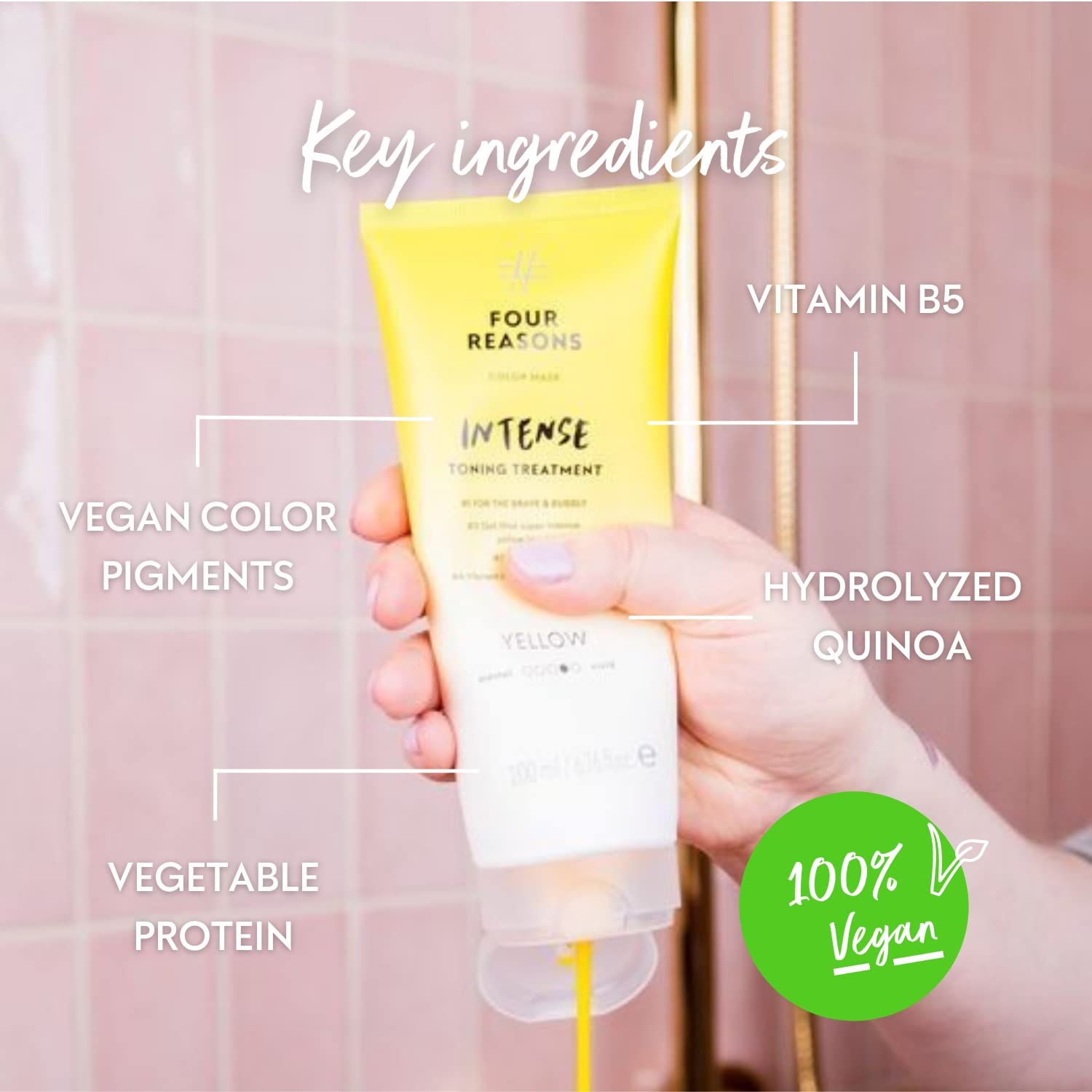 FOUR REASONS Color Mask INTENSE- Yellow – (27 Colors) Intensive Toning Treatment - Color Depositing Conditioner – Semi Permanent Hair Dye for Lightened and Colored Hair– 100% Vegan, 6.76 fl oz
