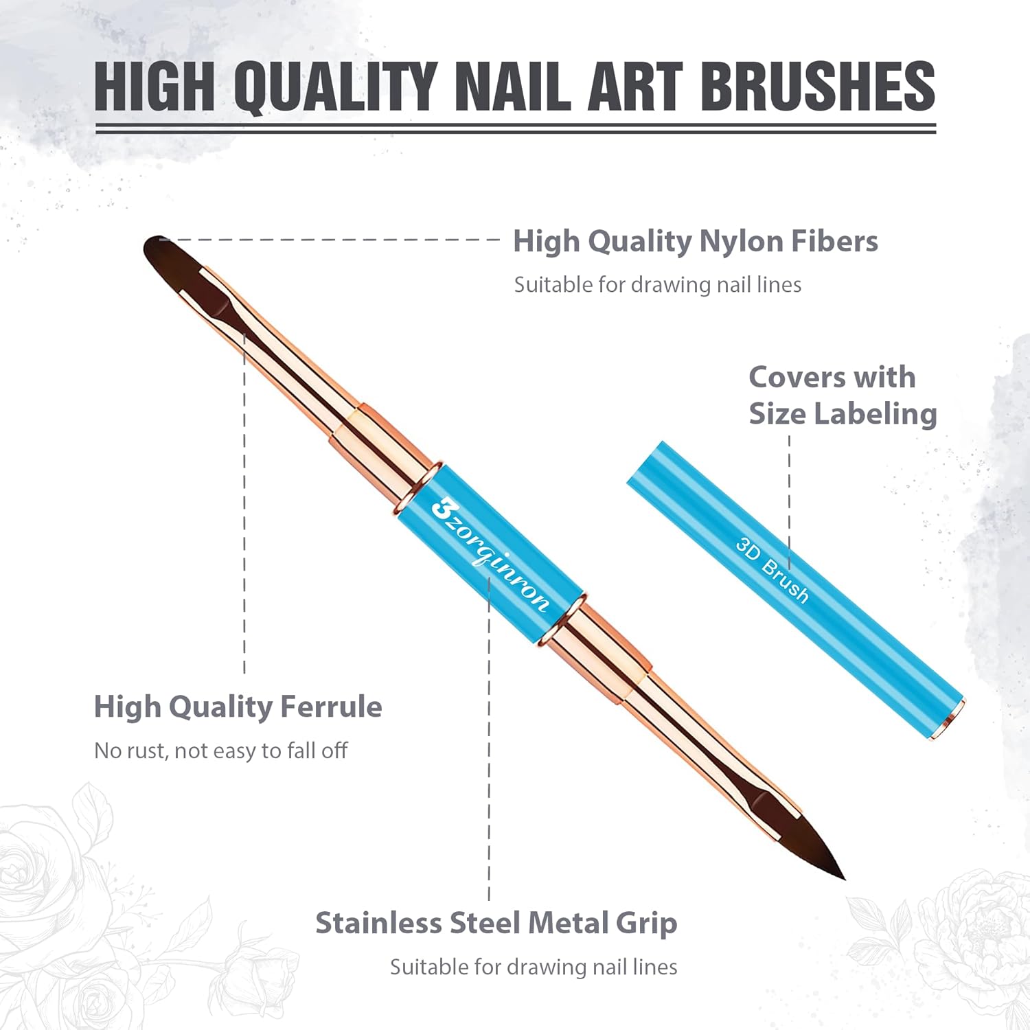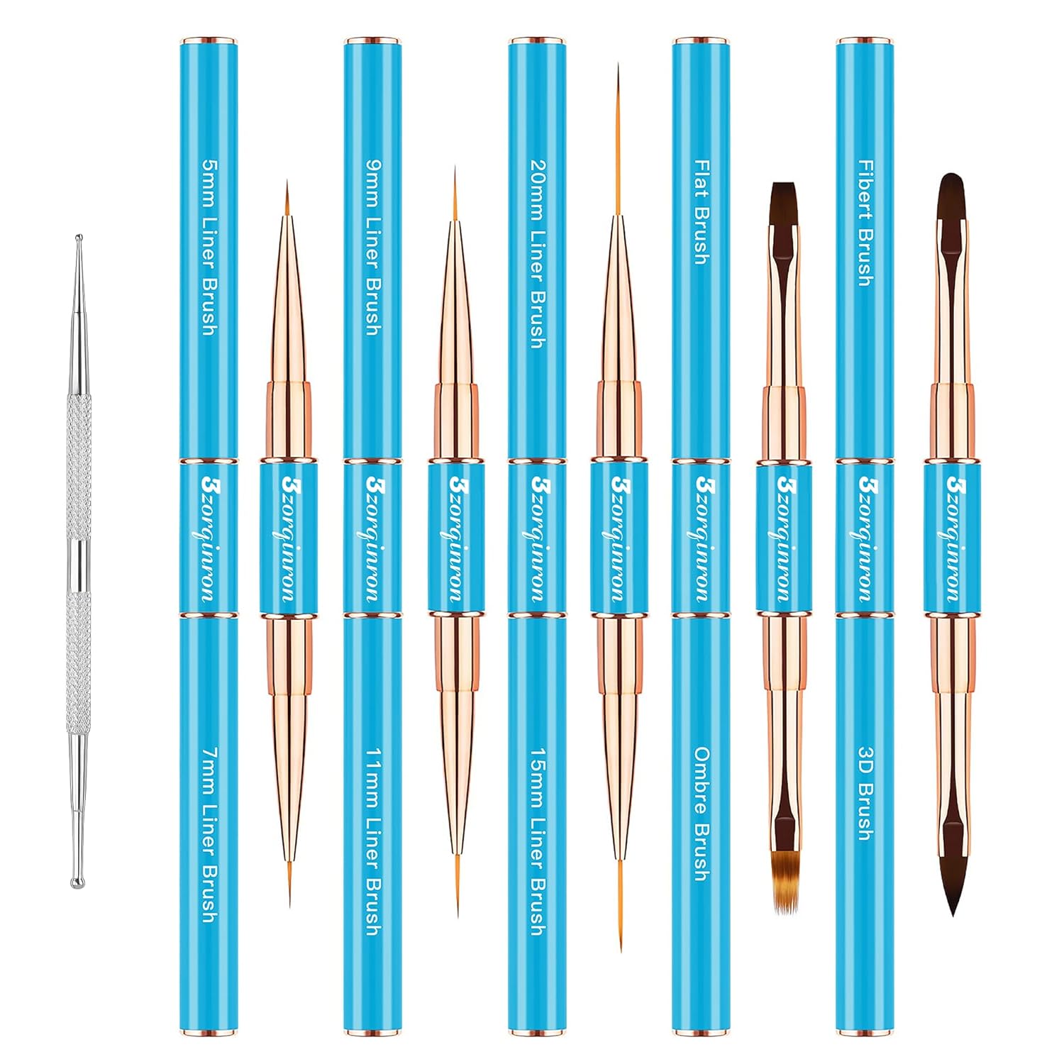 - Versatile Design – Our brushes feature double-heads with 10 different brush heads to choose from, including liner and detail brushes, flat and ombre brushes, a Filbert brush, and a 3D brush, giving you the freedom to create any design you like. Whether you're creating delicate floral patterns or bold abstract designs, these brushes will deliver outstanding results.