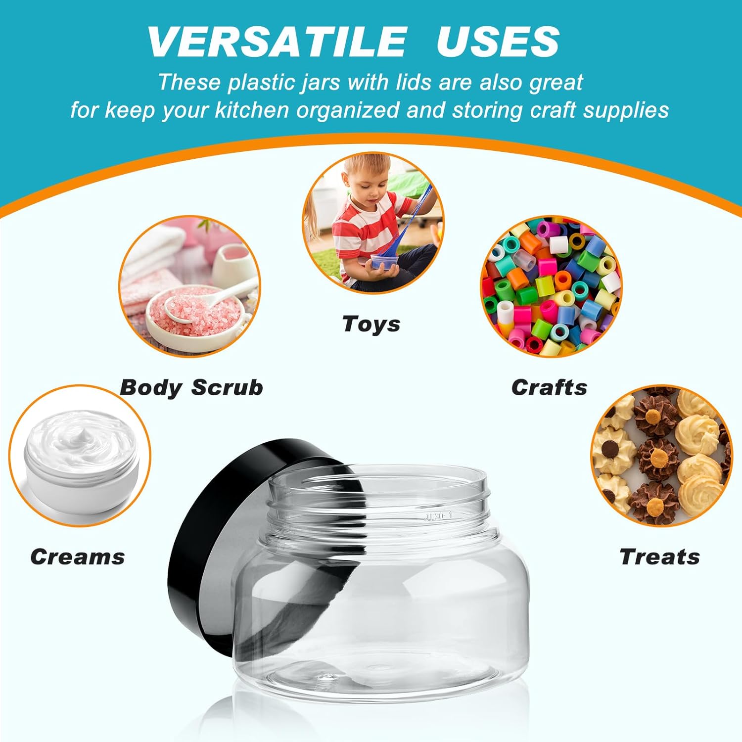 - Wide Application: these small jars with lids are not only suitable for storing cosmetics, lotions, body butter, but also dry food, nuts, spices, flour, sugar and other foods to keep them fresh, you can put them in the dressing table, bathroom, bedroom or kitchen, and open them when you need