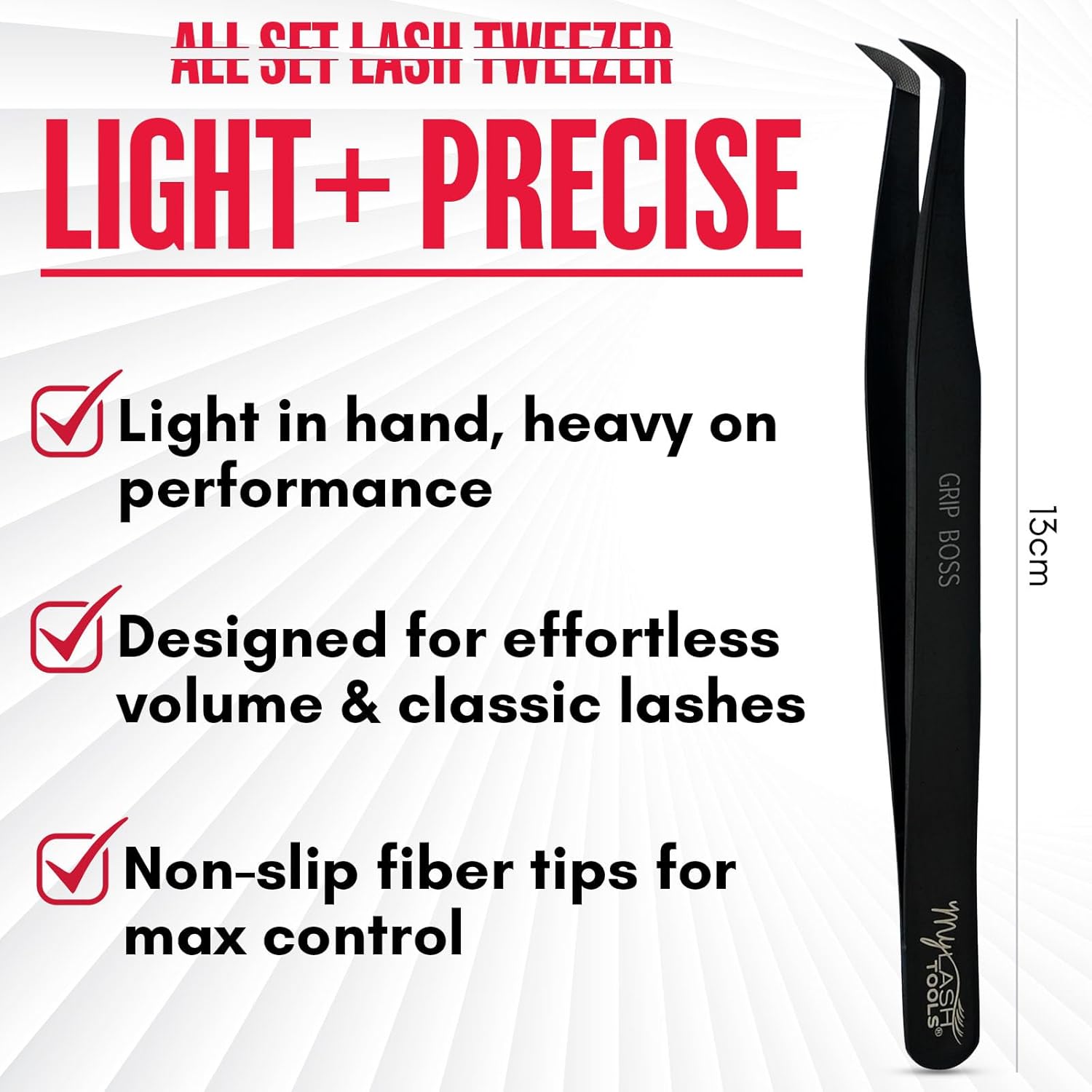- GRIP BOSS Pro Tool: The GRIP BOSS tweezer by My Lash Tools is perfect for lash artists who demand maximum control and effortless volume fan creation.