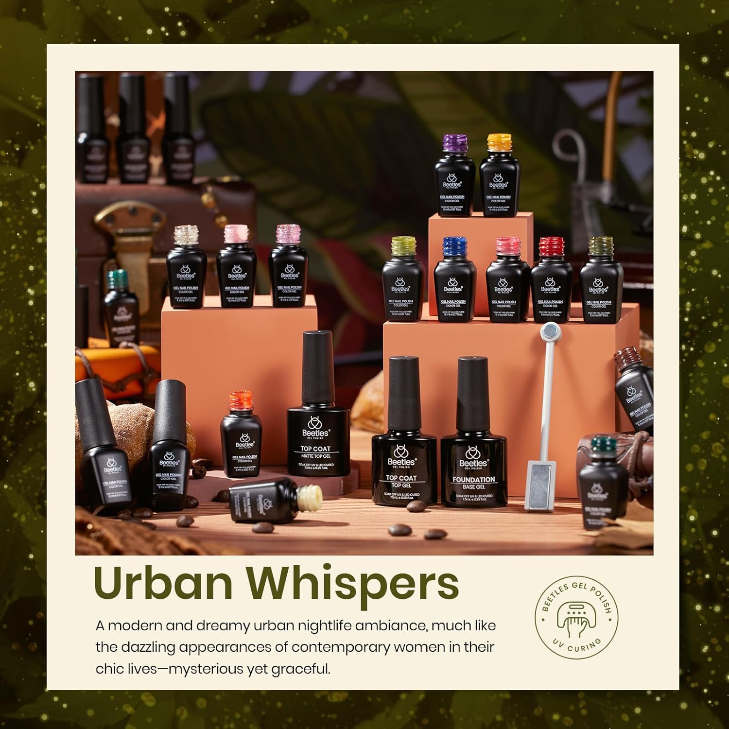 - 【All Season Colors Nail Essentials Kit】Latest nails trend color Gorgeous sence of Beetels Gel Nail Polish Kit ,you can DIY your favorite nail art at home at any time with Urban Elegance Collection!Tips for Cat Eye Gel Polish: Place the magnetic stick over the surface about 3-5mm for 5-10 secs to get your desired effect!!!!