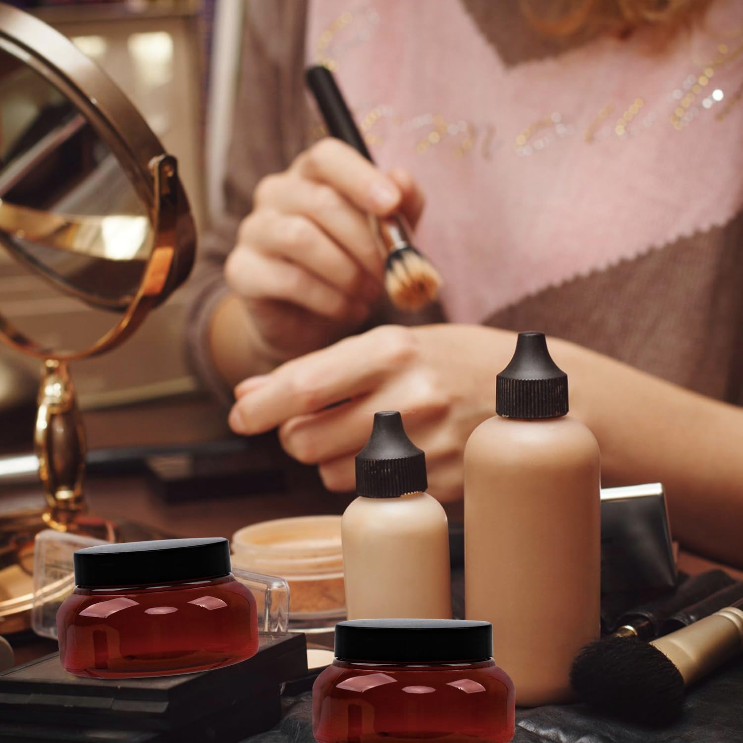 - Versatile & Refillable- The amber Plastic Jars low-profile jars are ideal for a variety of uses, from body butters to sugar scrubs. Refill these amber plastic jars for a sustainable beauty regimen. Switch to a practical solution for your cosmetic storage needs