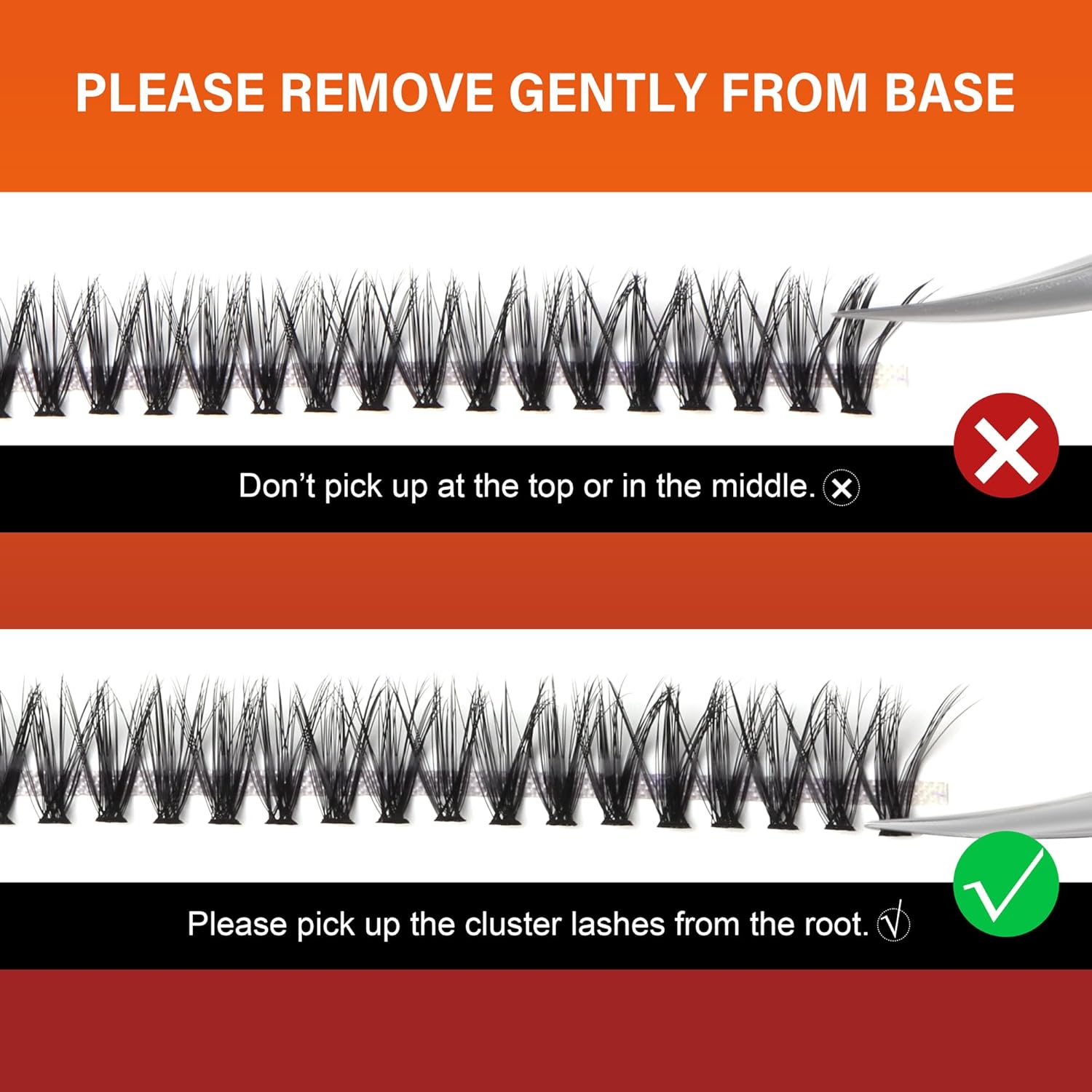 - 𝗘𝗮𝘀𝘆 𝘁𝗼 W𝗲𝗮𝗿 L𝗮𝘀𝗵𝗲𝘀 C𝗹𝘂𝘀𝘁𝗲𝗿 Apply a thin layer of eyelash adhesive to the root of natural eyelashes, gently place the eyelash cluster under the bottom of natural lashes using eyelash adhesive, and then apply a thin layer of eyelash sealant to fix the lash cluster in place and eliminate any residue