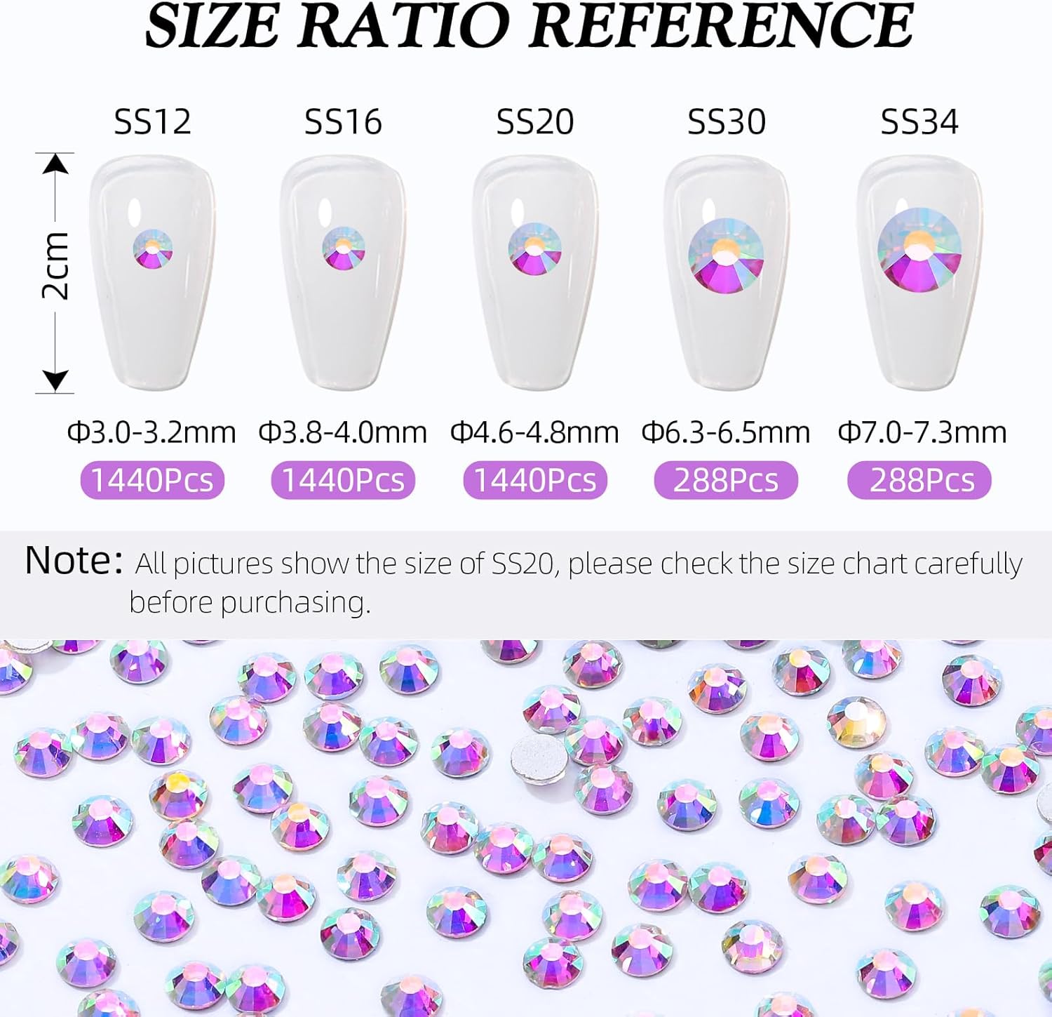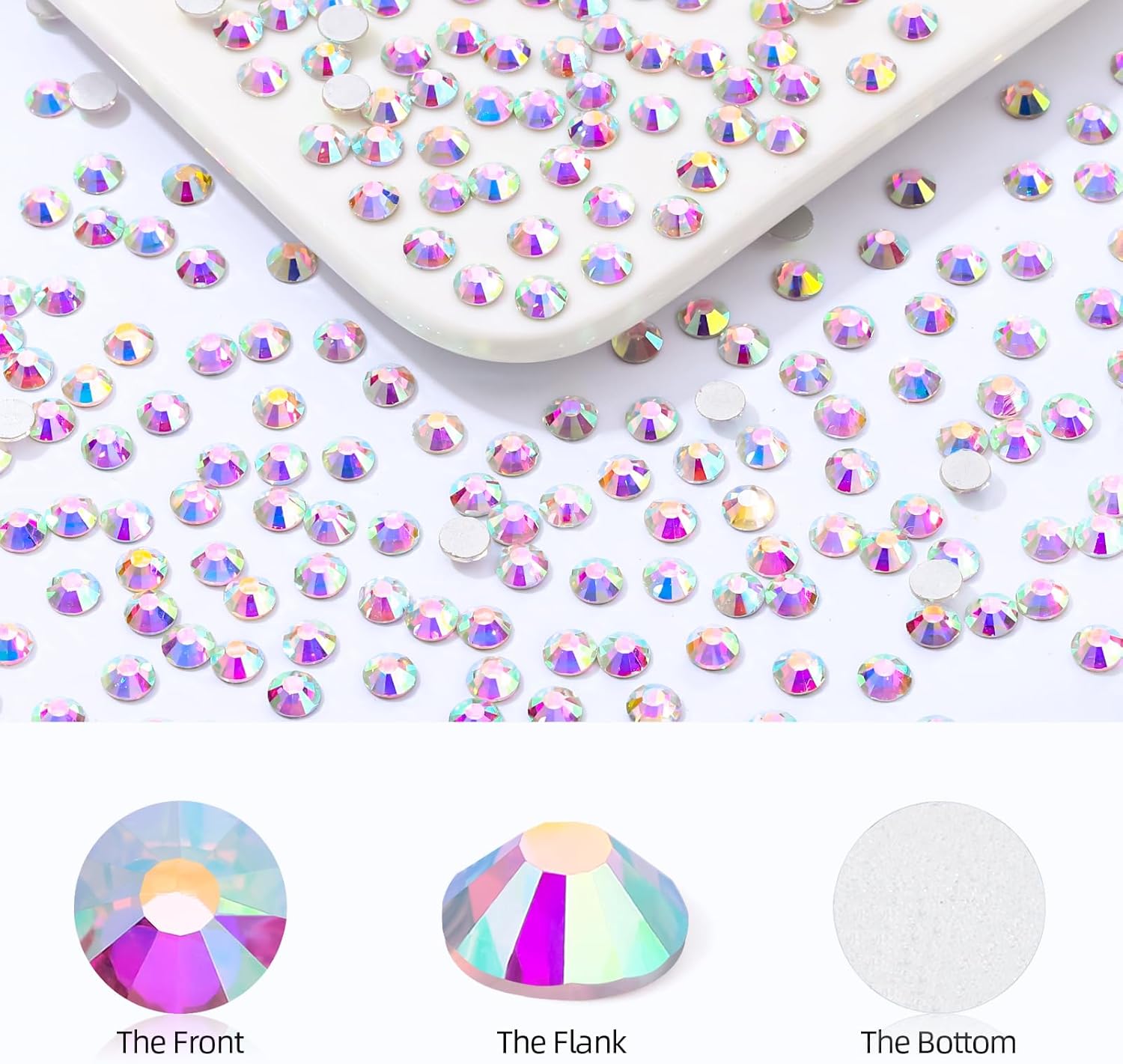 Crystal AB Flatback Rhinestones, Glass Rhinestones for Nail Art and Craft, Glue Fix, Loose Crystal Gemstones(Crystal AB, SS16, 1440pcs, 3.8-4.0mm)