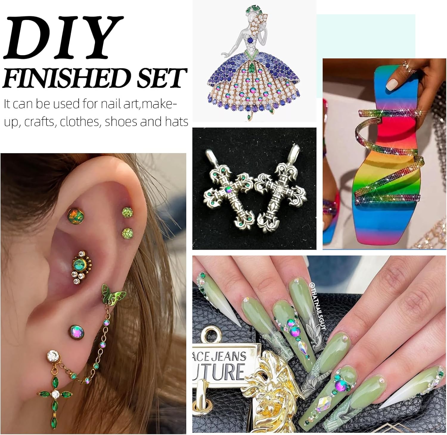 - Use tweezers and Picking Pen gem picker to pick rhinestones, There is no glue on the bottom, additional nail gel is required, or other professional glue for makeup or nails; Can use E6000/E7000 super glue to fix on crafts, art decoration; not hotfix