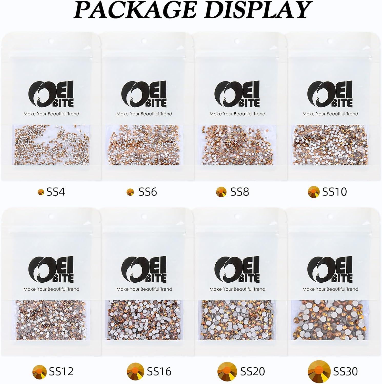 - Product Packaging: Bags packaging SS30 6.4~6.6 MM - 288 Pcs gold flatback rhinestones