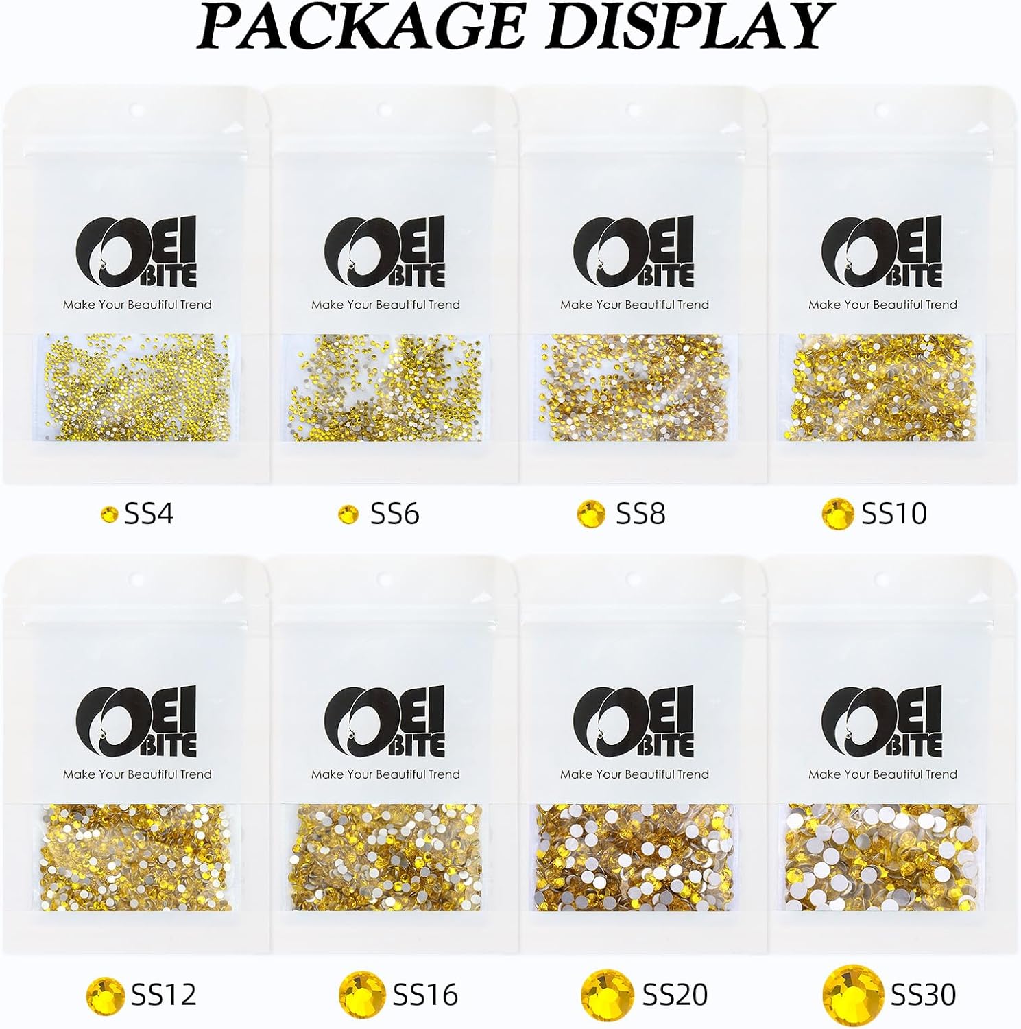 - Product Packaging: Bags packaging SS20 4.6~4.8 MM - 1440 Pcs yellow flatback rhinestones