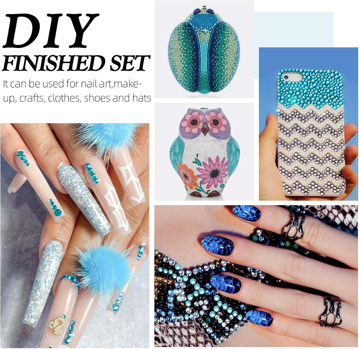 - Use tweezers and Picking Pen gem picker to pick rhinestones, There is no glue on the bottom, additional nail gel is required, or other professional glue for makeup or nails; Can use E6000/E7000 super glue to fix on crafts, art decoration; not hotfix