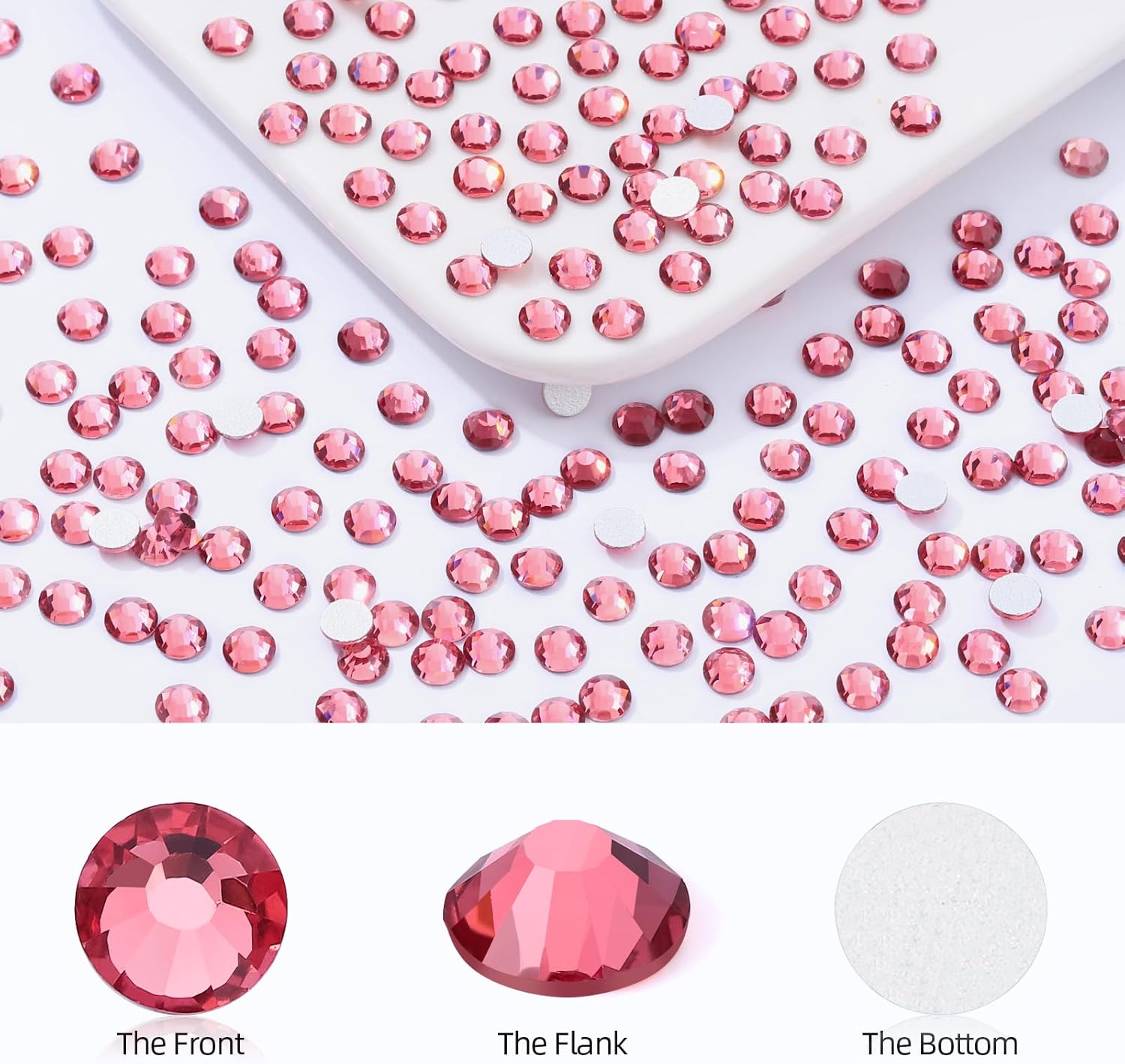 Rose Flatback Rhinestones, Glass Rhinestones for Nail Art and Craft, Glue Fix, Loose Crystal Gemstones(Rose, SS30, 288pcs, 6.4-6.6mm)