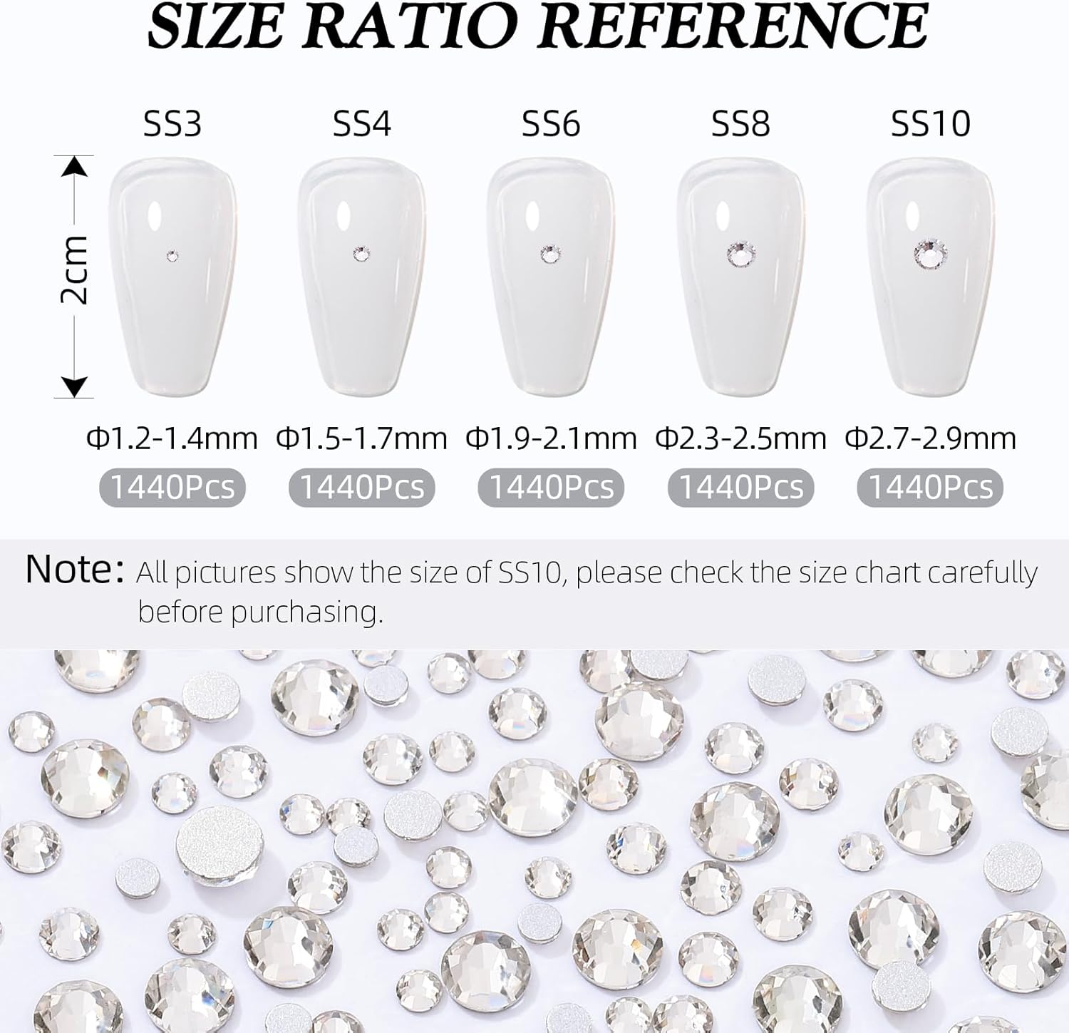 Crystal Clear Flatback Rhinestones, Glass Rhinestones for Nail Art and Craft, Glue Fix, Loose Crystal Gemstones(Crystal, SS4, 1440pcs, 1.5-1.7mm)