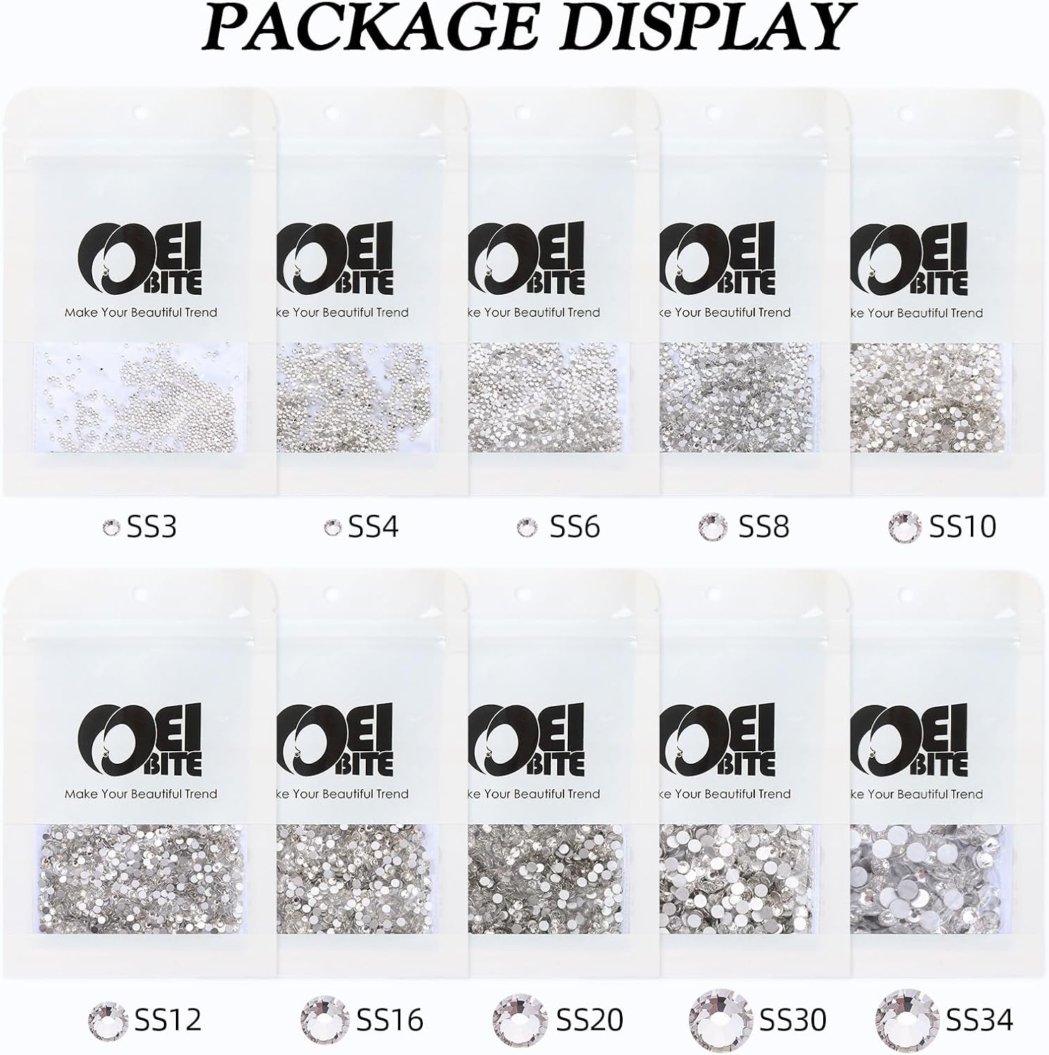 - Product Packaging: Bags packaging SS8 2.3~2.5 MM - 1440 Pcs crystal clear flatback rhinestones