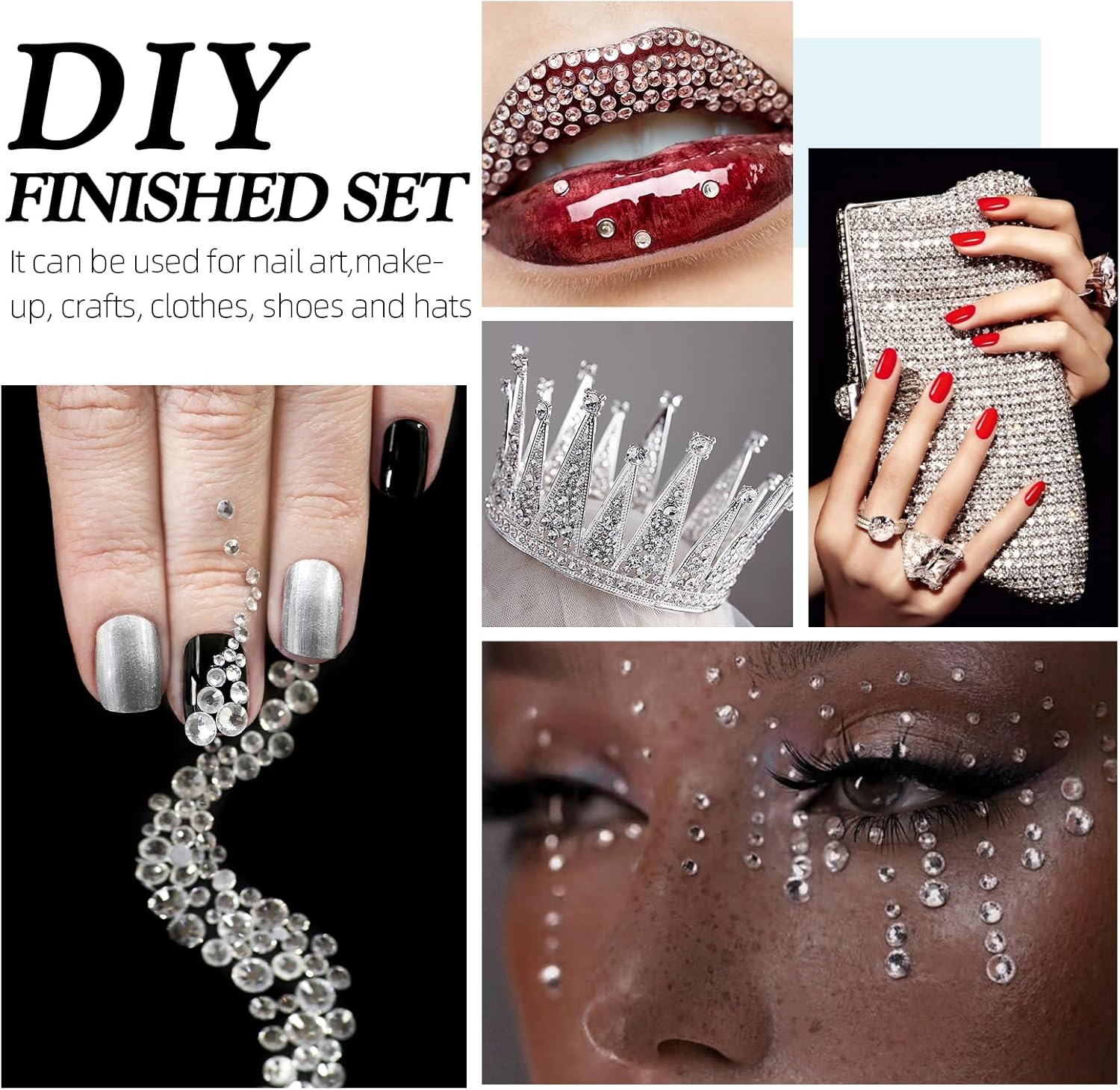 - Use tweezers and Picking Pen gem picker to pick rhinestones, There is no glue on the bottom, additional nail gel is required, or other professional glue for makeup or nails; Can use E6000/E7000 super glue to fix on crafts, art decoration; not hotfix