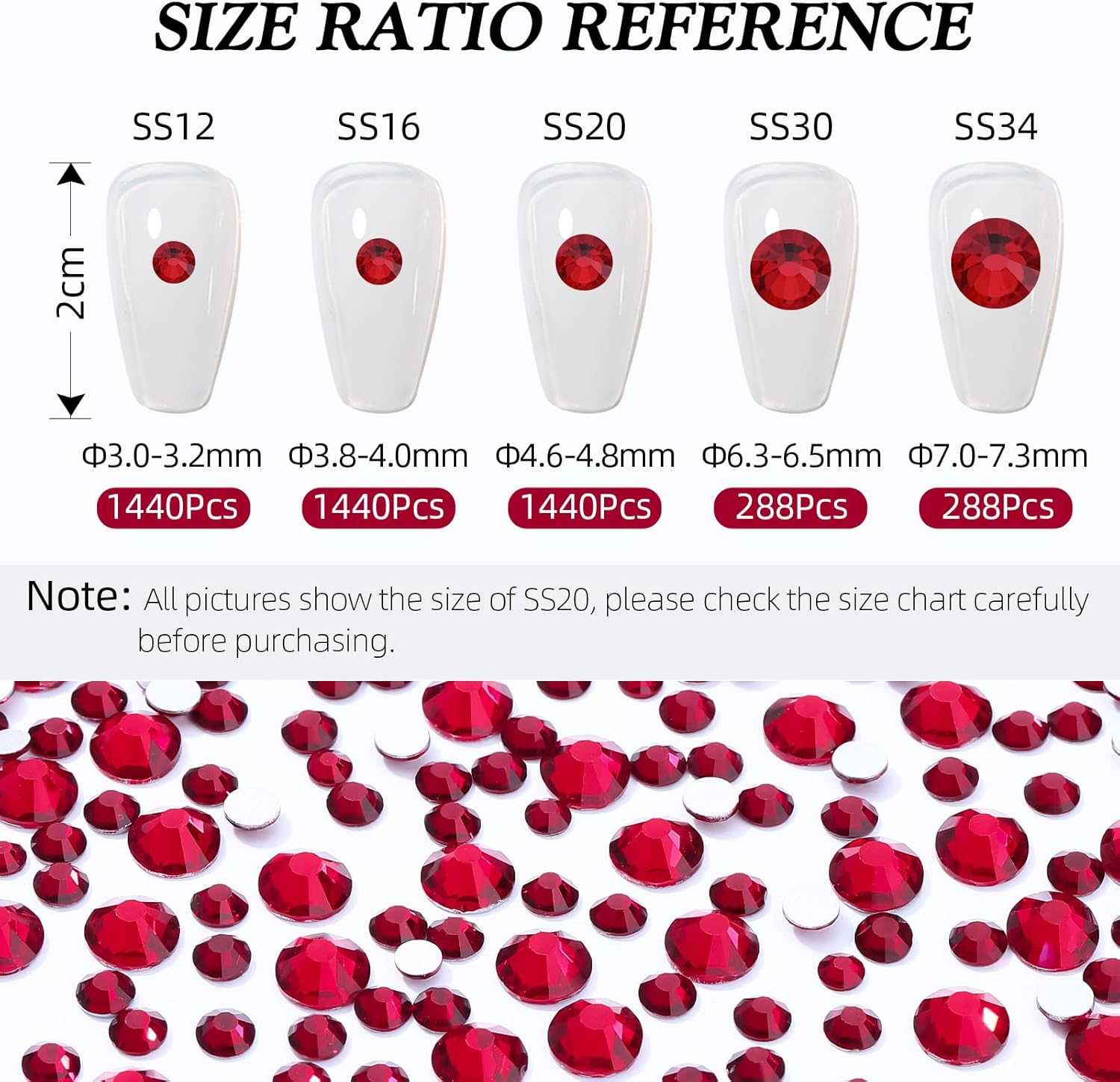 Siam Flatback Rhinestones, Glass Rhinestones for Nail Art and Craft, Glue Fix, Loose Crystal Gemstones(Siam, SS20, 1440pcs, 4.6-4.8mm)