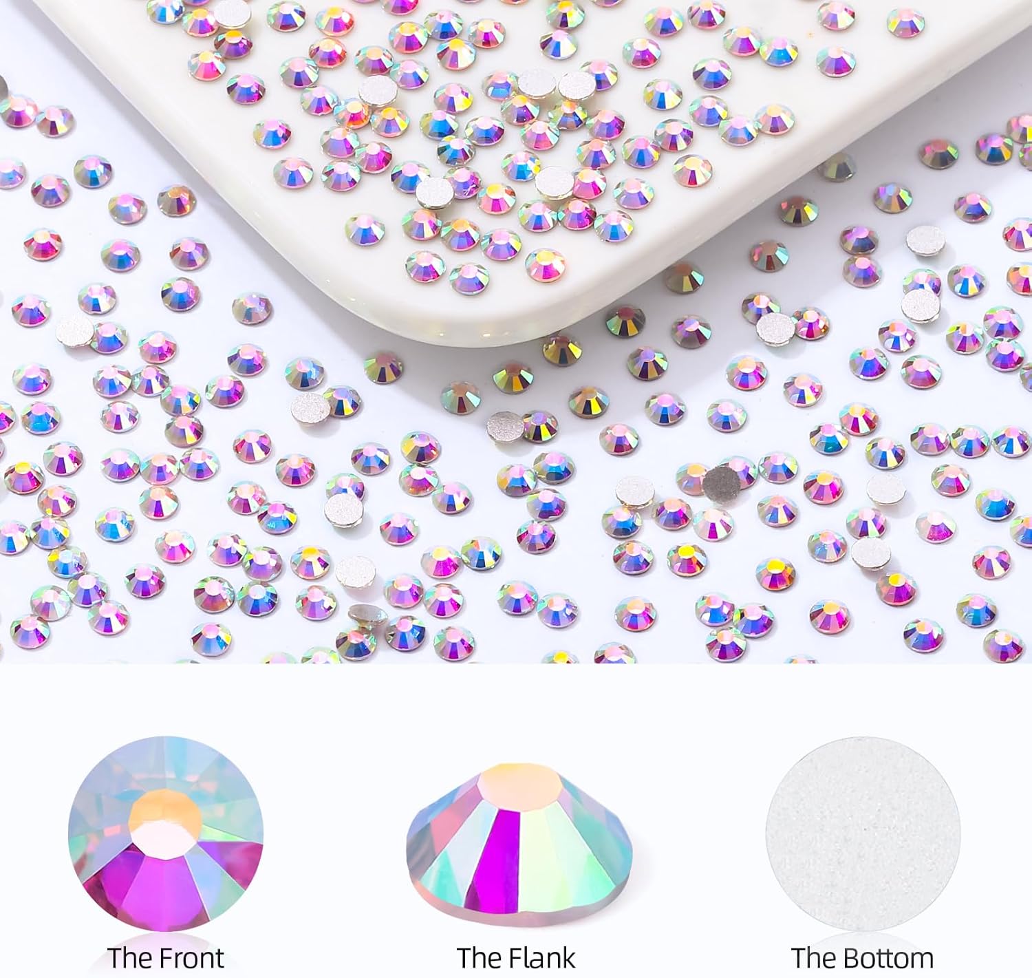 Crystal AB Flatback Rhinestones, Glass Rhinestones for Nail Art and Craft, Glue Fix, Loose Crystal Gemstones(Crystal AB, SS3, 2880pcs, 1.3-1.4mm)