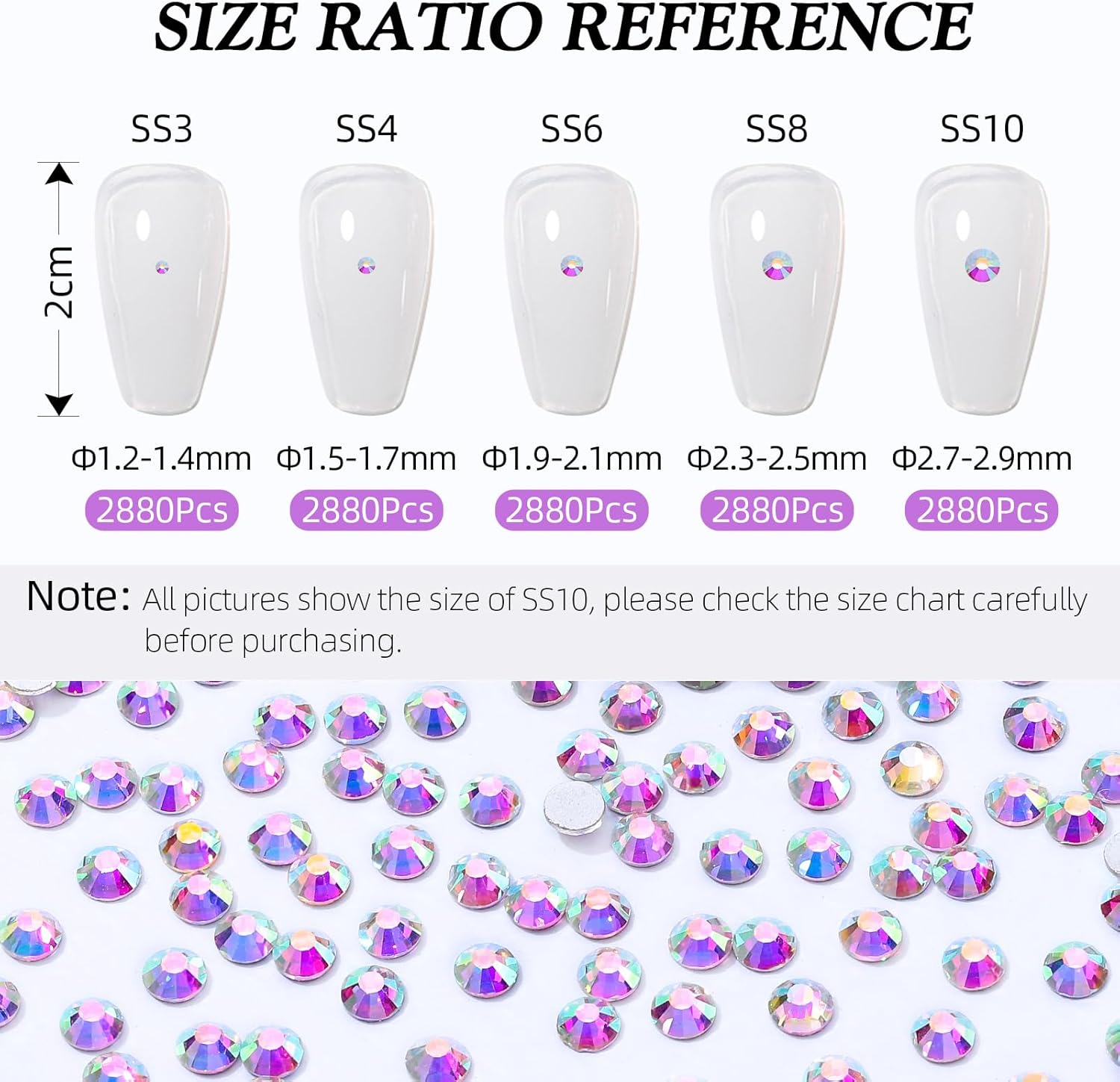- Product Packaging: Bags packaging SS4 1.5~1.7 MM - 2880 Pcs crystal AB flatback rhinestones.