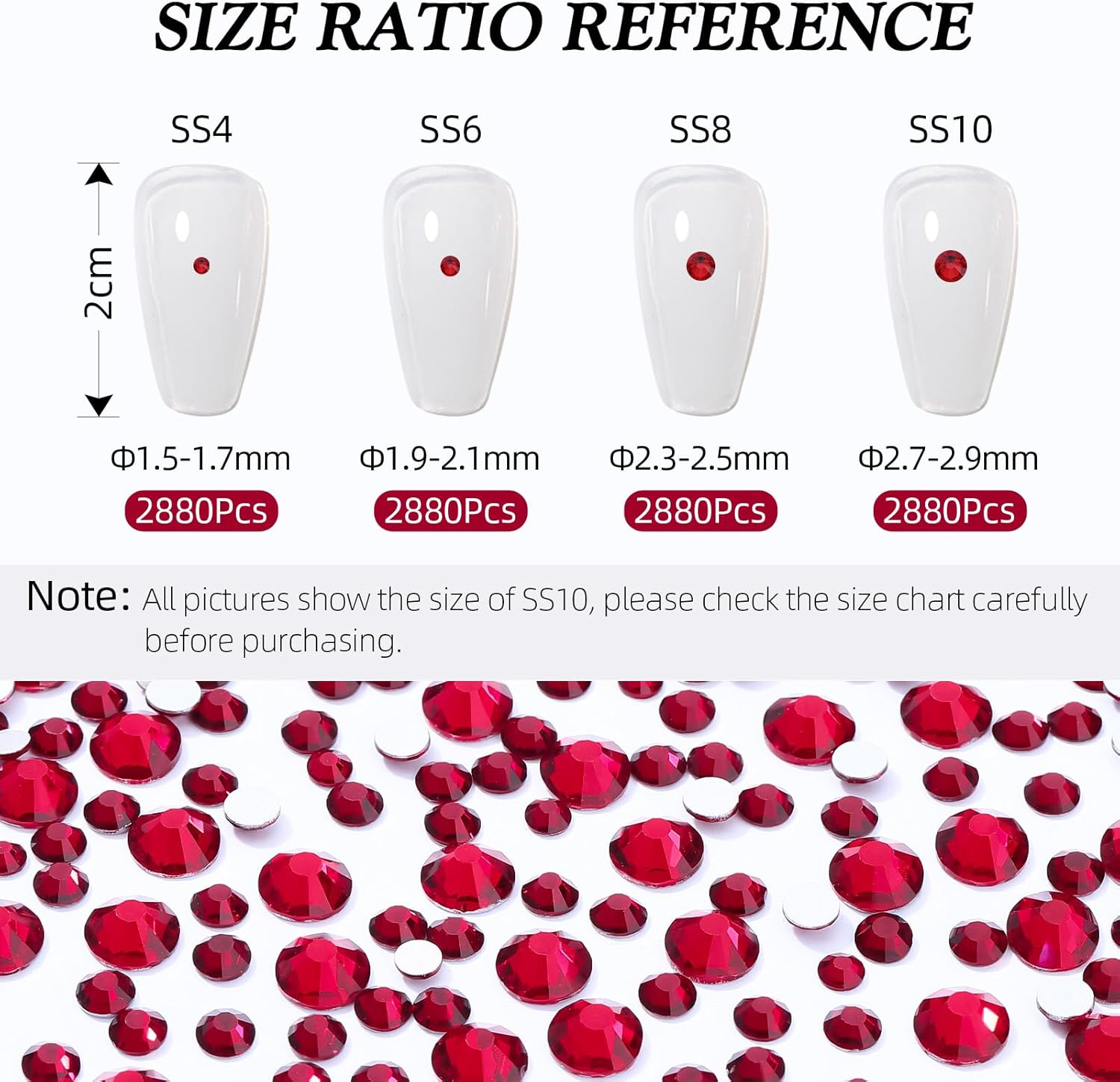 Siam Flatback Rhinestones, Glass Rhinestones for Nail Art and Craft, Glue Fix, Loose Crystal Gemstones(Siam, SS10, 2880pcs, 2.7-2.8mm)