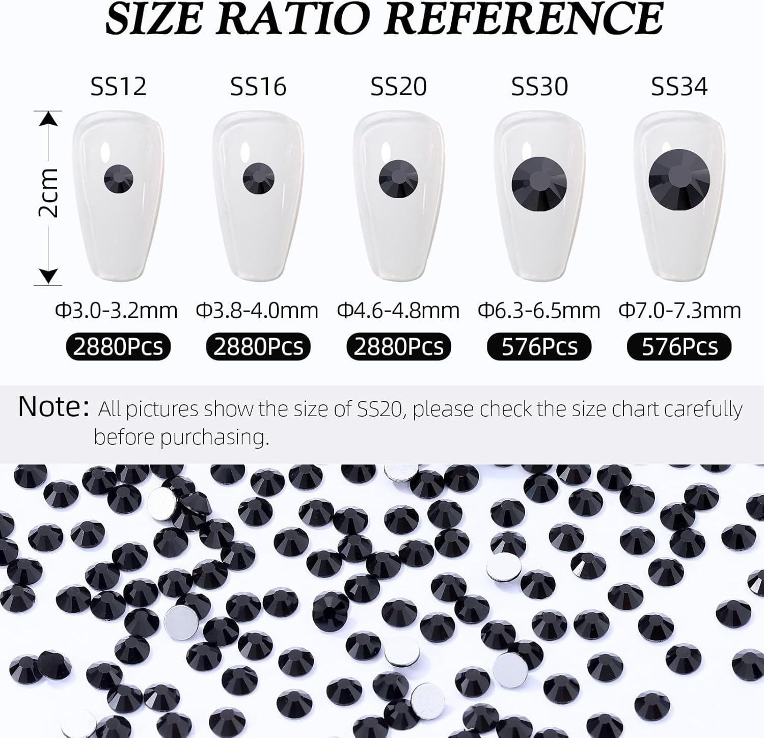 - Product Packaging: Bags packaging SS16 3.8~4.0 MM - 2880 Pcs black flatback rhinestones.