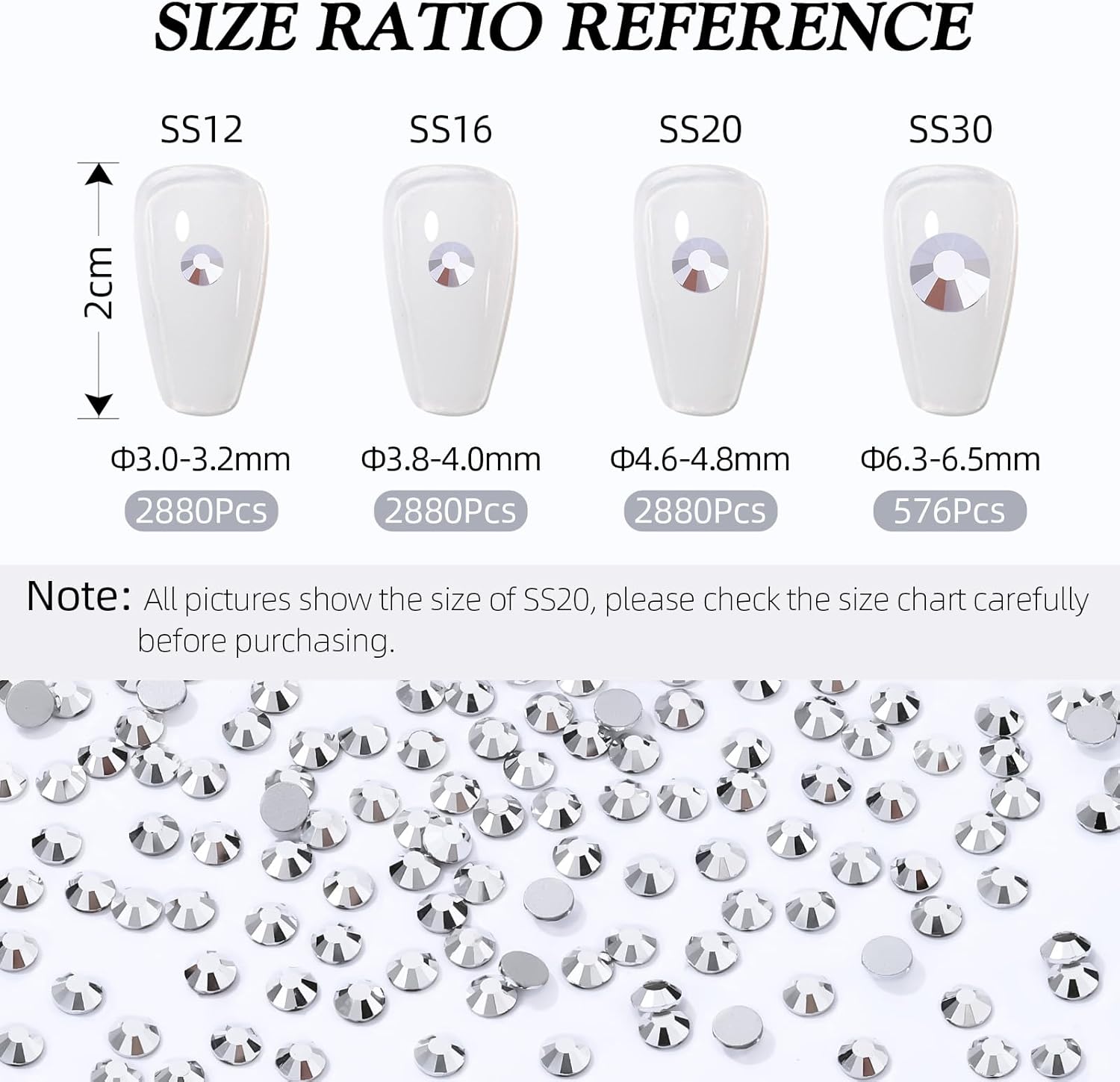 Silver Flatback Rhinestones, Glass Rhinestones for Nail Art and Craft, Glue Fix, Loose Crystal Gemstones(Silver, SS12, 2880pcs, 2.9-3.0mm)