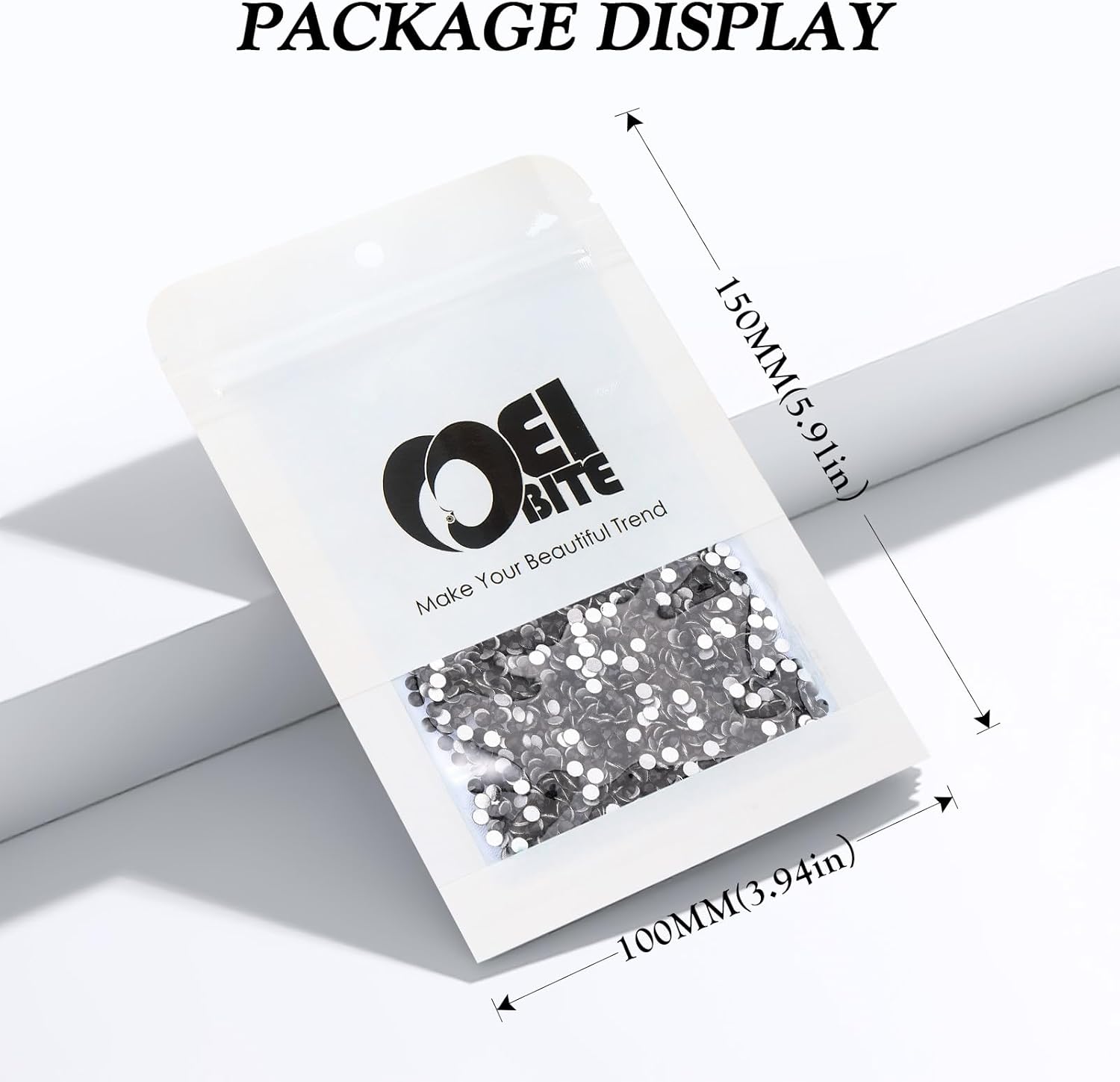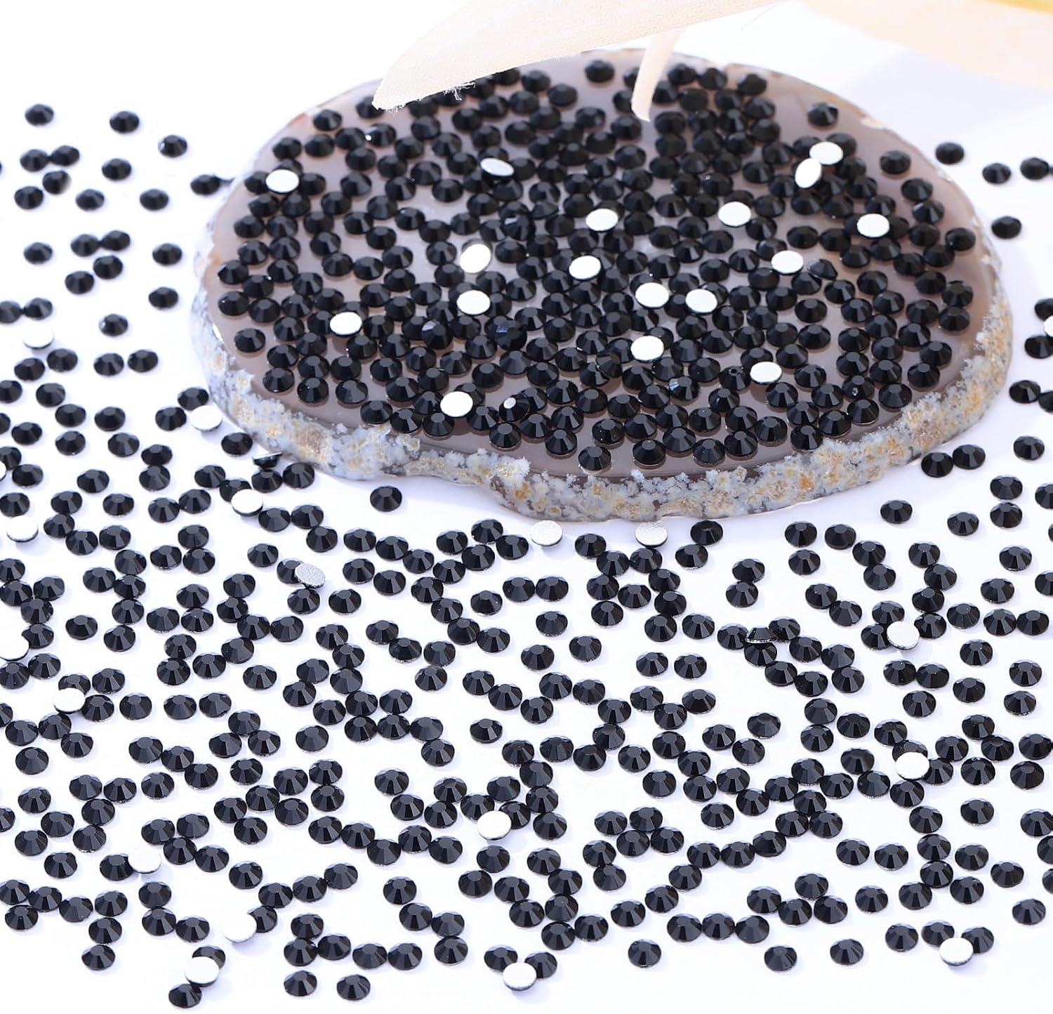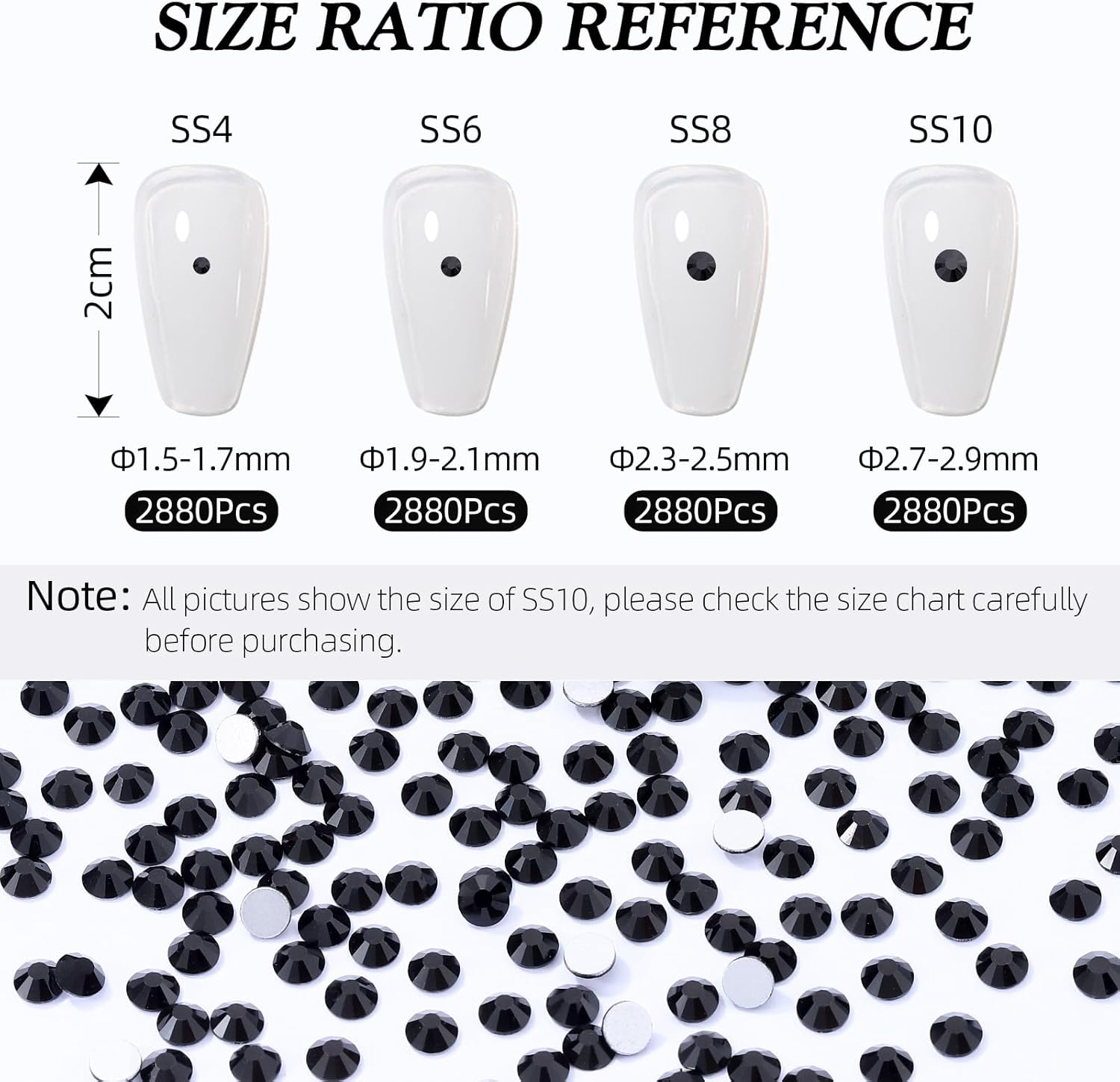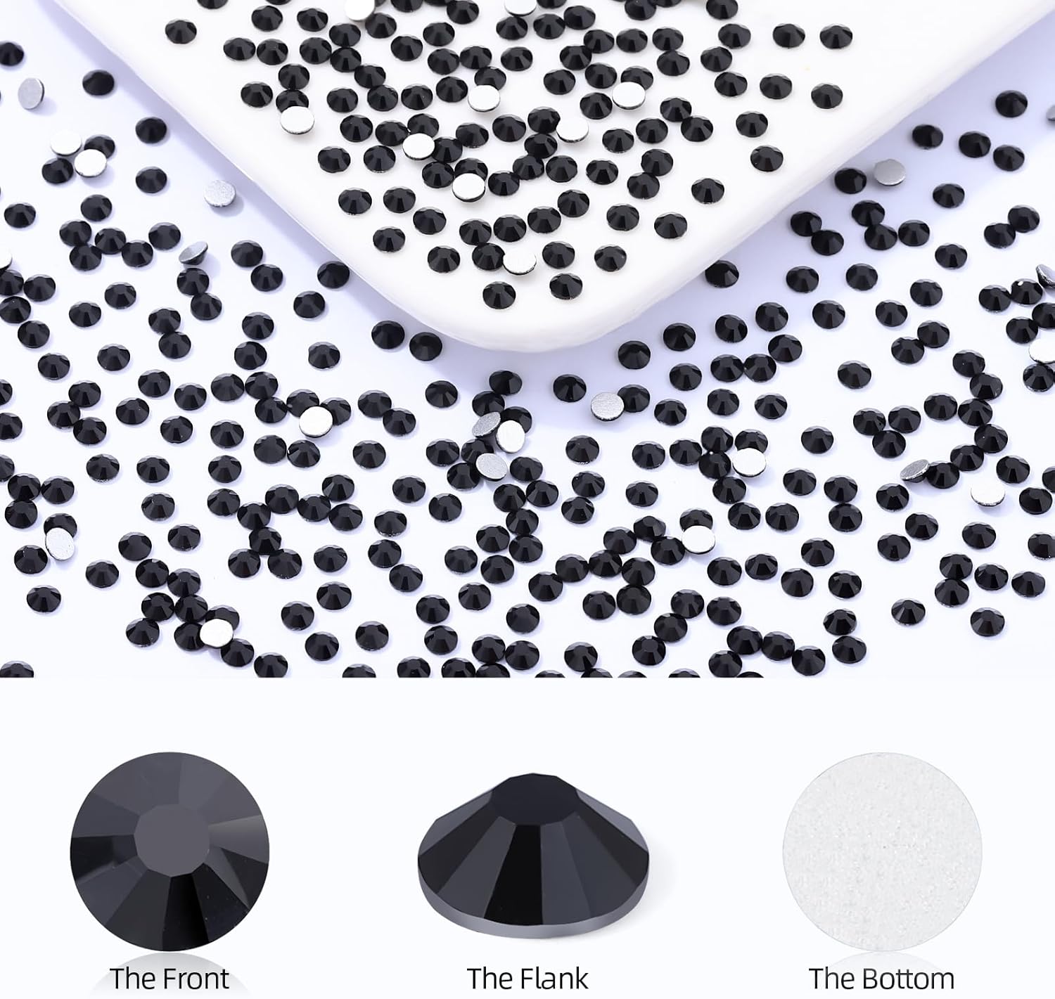 - Product Packaging: Bags packaging SS8 2.3~2.5 MM - 2880 Pcs black flatback rhinestones.
