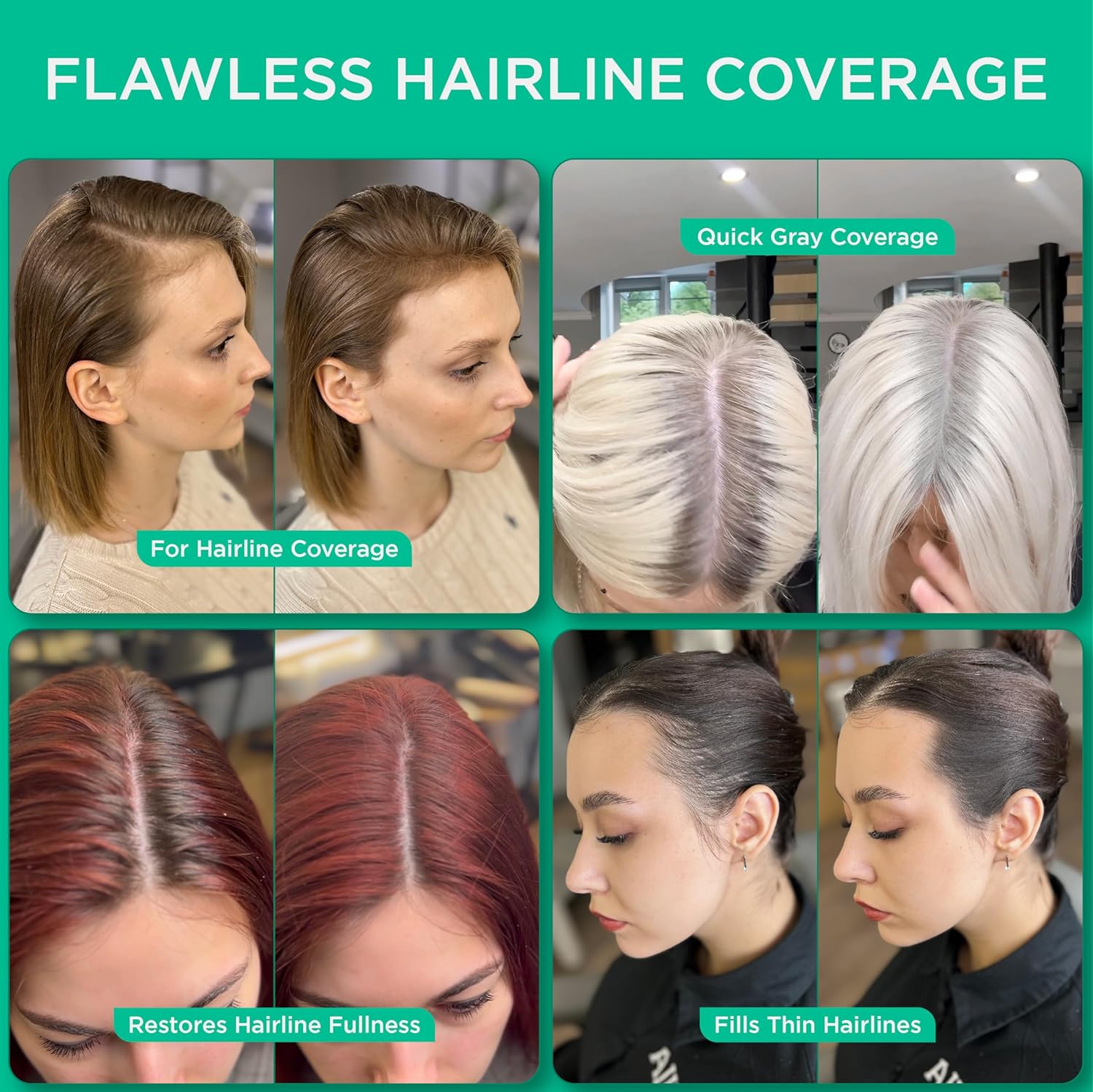 - Product Benefits : our temporary root touch-up powder, designed to conceal roots effortlessly. This innovative formula blends seamlessly with your natural hair color, providing instant coverage for grays and regrowth. The product comes with a convenient brush and sponge for easy application, allowing you to achieve a flawless finish in just minutes.n our temporary root touch-up powder, designed to conceal roots effortlessly. This innovative formula blends seamlessly with your natural hair color, providing instant⦠See more