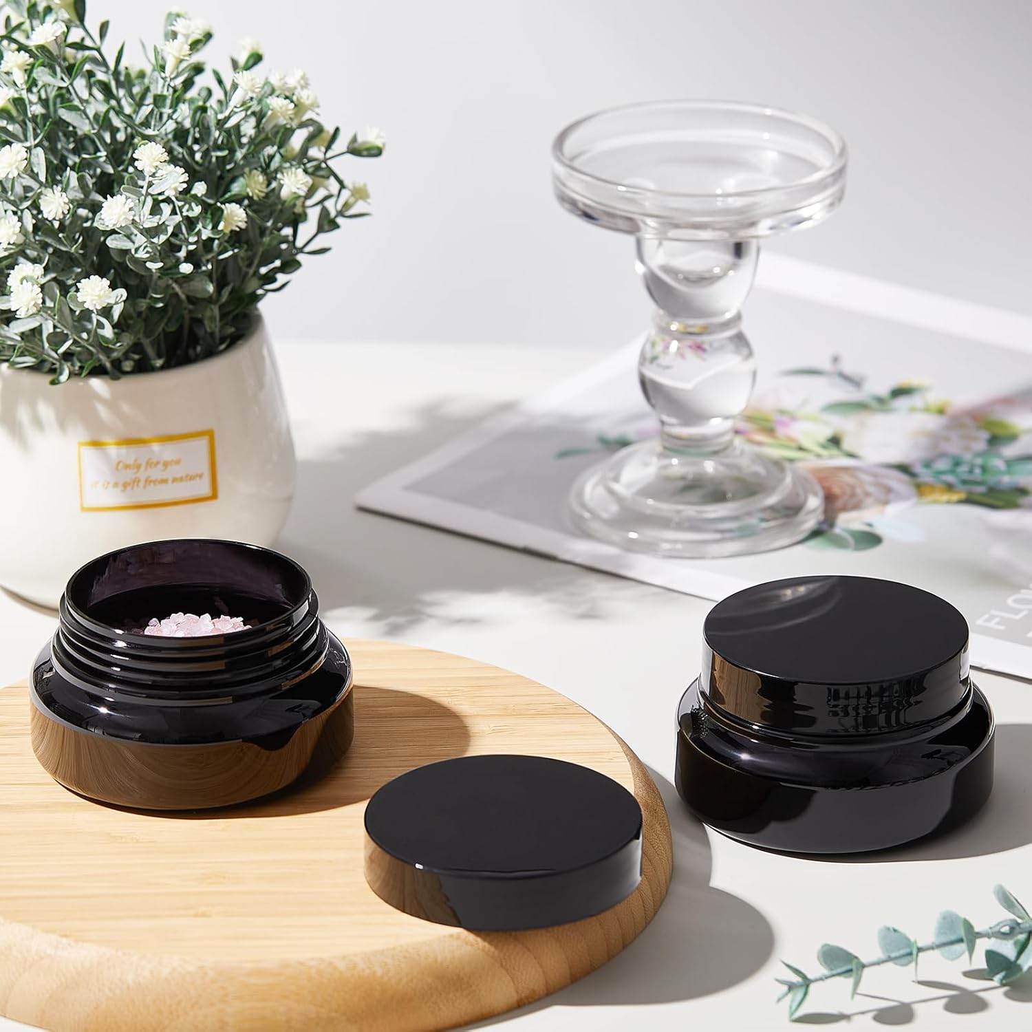 - Wide Application: these small jars with lids are not only suitable for storing cosmetics, lotions, body butter, but also dry food, nuts, spices, flour, sugar and other foods to keep them fresh, you can put them in the dressing table, bathroom, bedroom or kitchen, and open them when you need