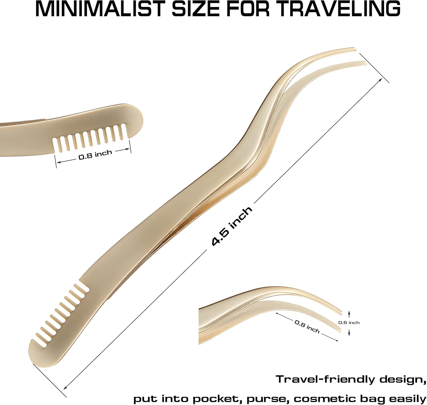 - Golden Eyelash Tweezers - Our lash tweezers is about 11.5cm/4.5in long. These tweezers are small, delicate and easy to carry. Their striking golden finish gives them a special look.