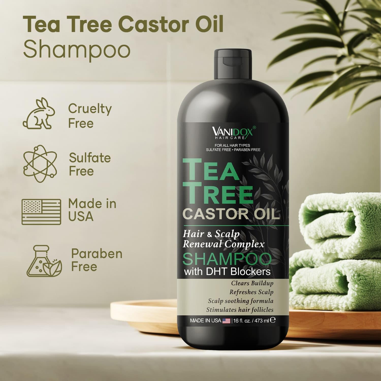 - MADE IN USA WITH ETHICALLY SOURCED INGREDIENTS -- our products harness the benefits of both Castor Oil and 100% Tea Tree Oil. Sulfate-free, paraben-free, and never tested on animals. Ethically.