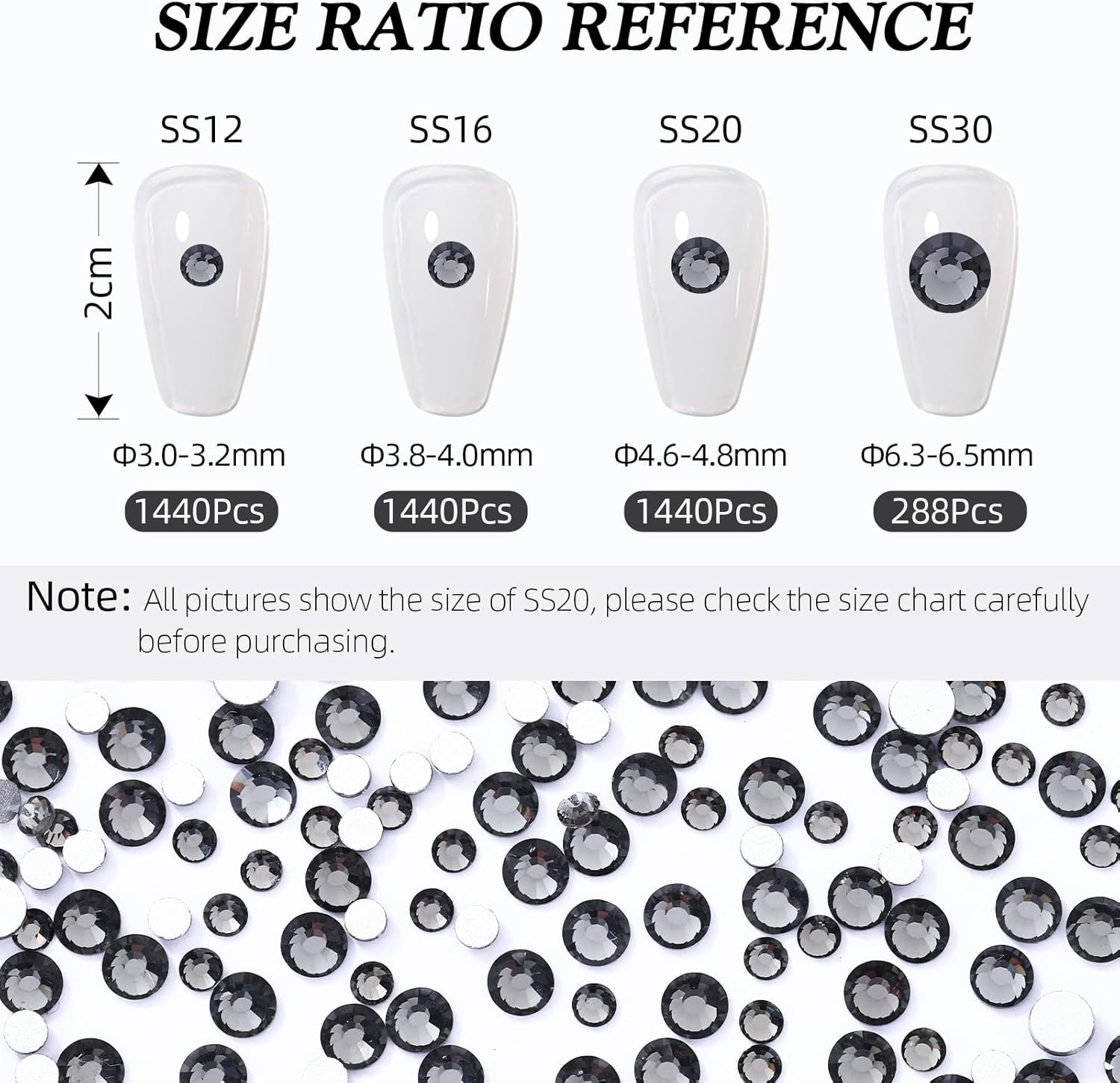Gray Flatback Rhinestones, Glass Rhinestones for Nail Art and Craft, Glue Fix, Loose Crystal Gemstones(Gray, SS12, 1440pcs, 2.9-3.0mm)