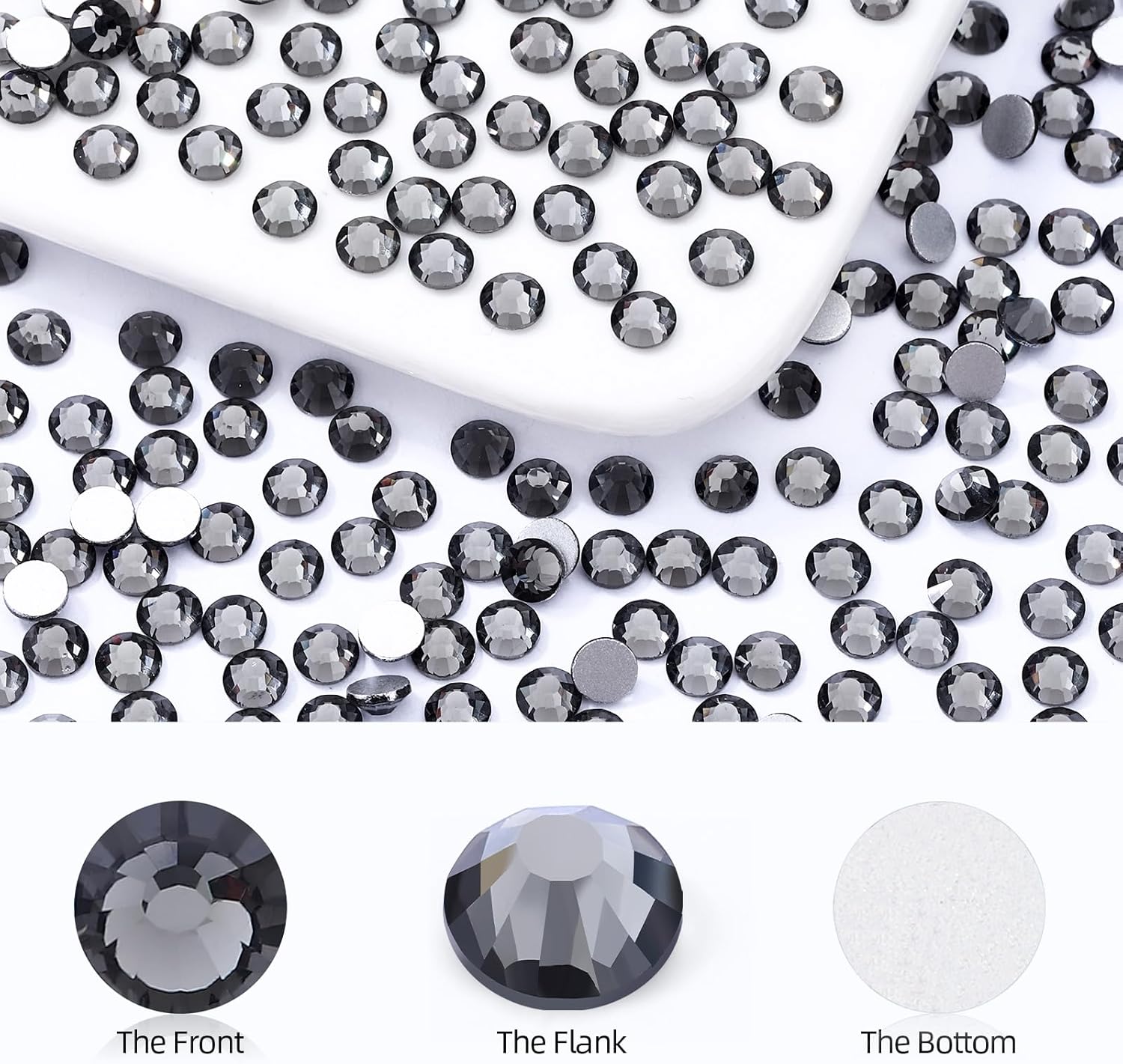 Gray Flatback Rhinestones, Glass Rhinestones for Nail Art and Craft, Glue Fix, Loose Crystal Gemstones(Gray, SS4, 1440pcs, 1.5-1.7mm)