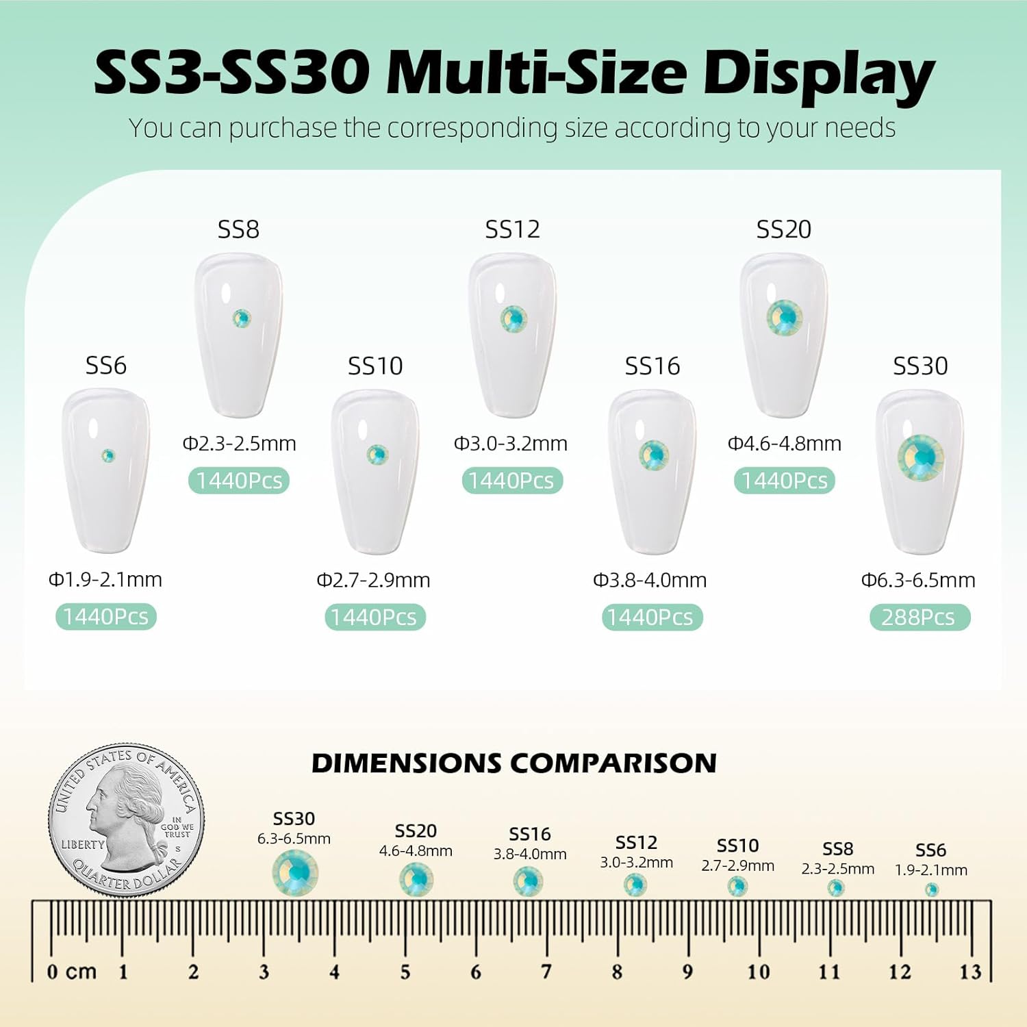 F Light Green Flatback Rhinestones, Glass Rhinestones for Nail Art and Craft, Glue Fix, Loose Crystal Gemstones(F Light Green, SS16, 1440pcs, 3.8-4.0mm)