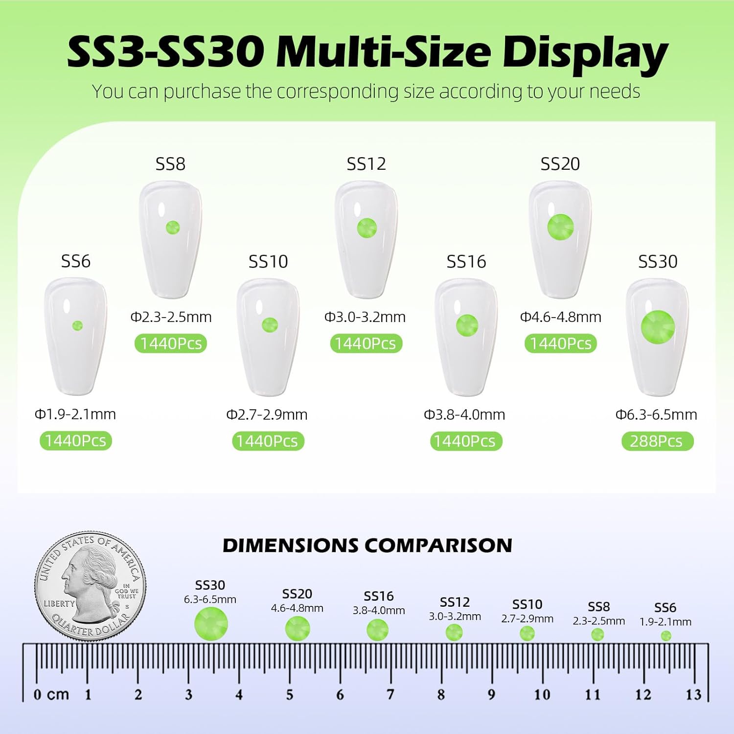 - Material: Glass/Artificial Crystal, Flat Back Round, High-precision cross-section, multi-sided cutting, high brightness, high Sparkly